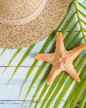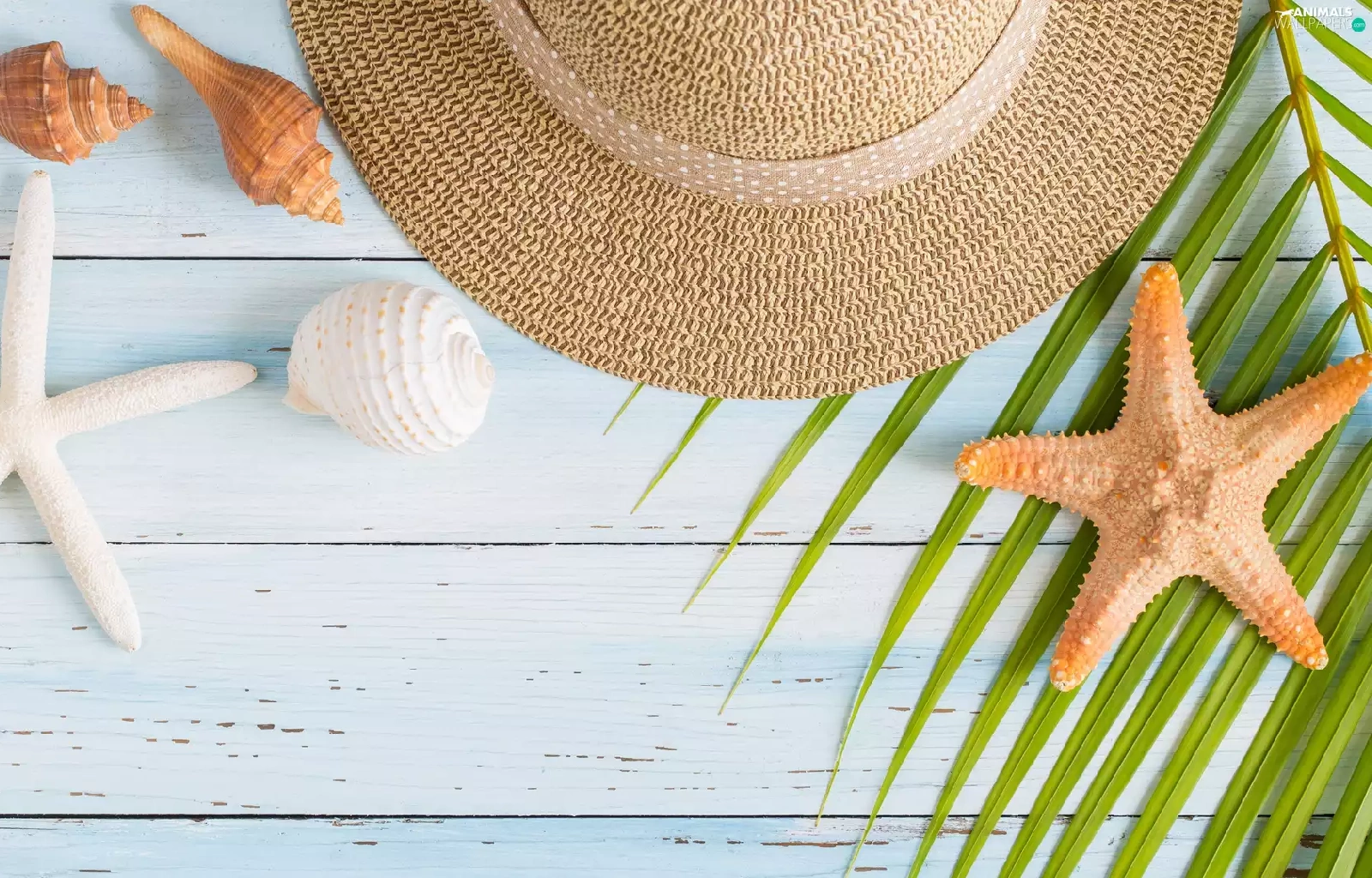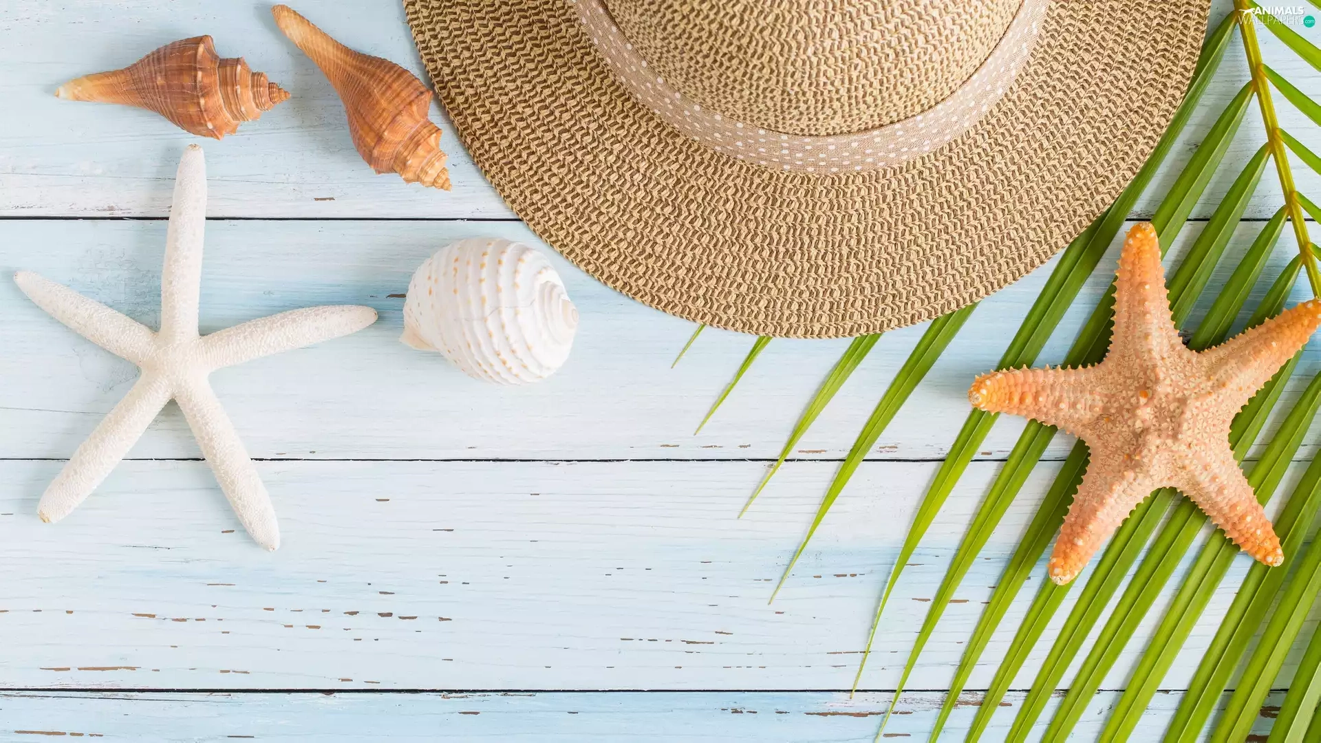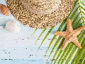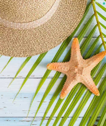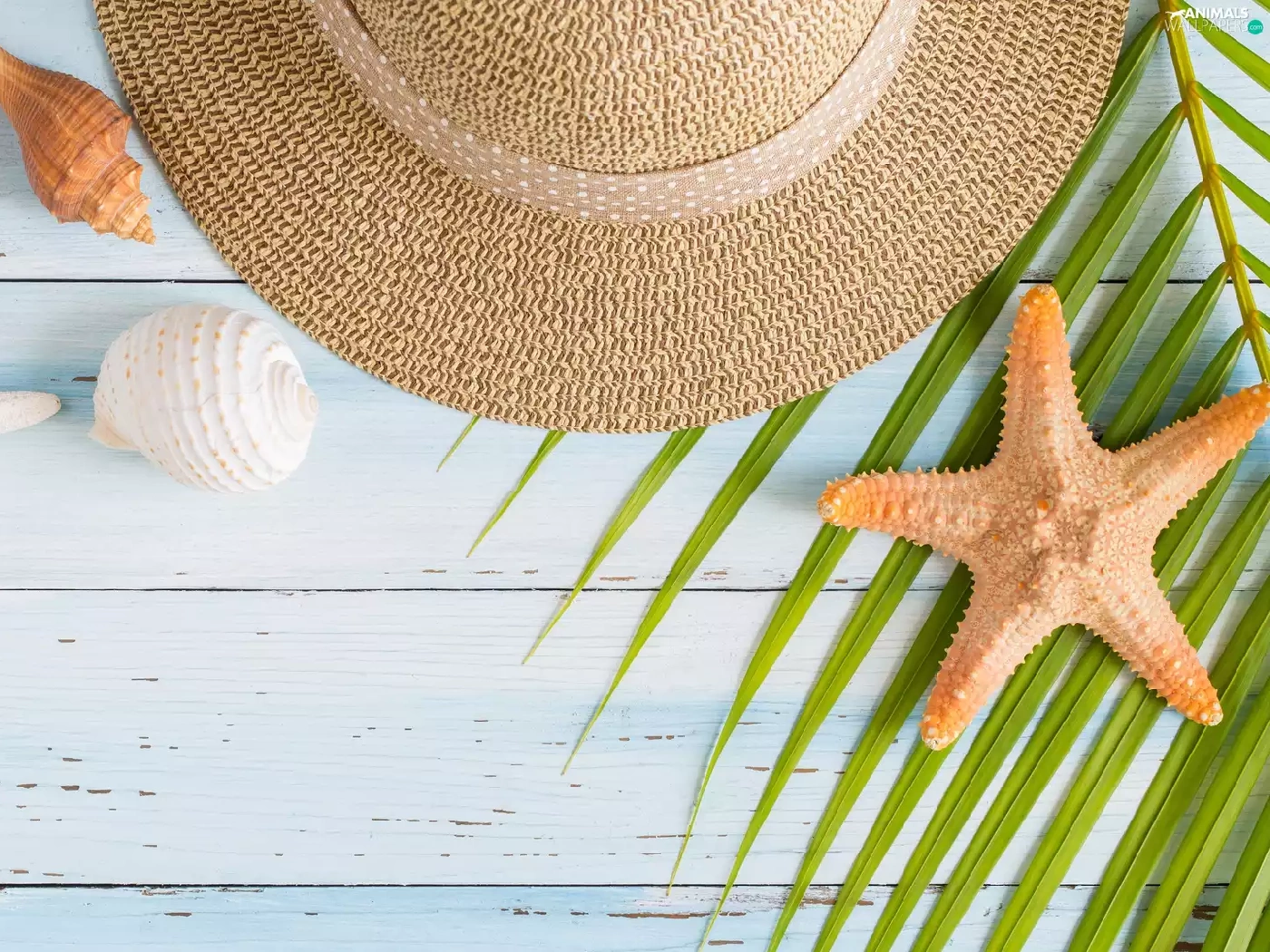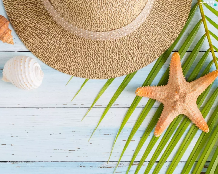 Shells, Hat, Palms, boarding, leaf, starfish