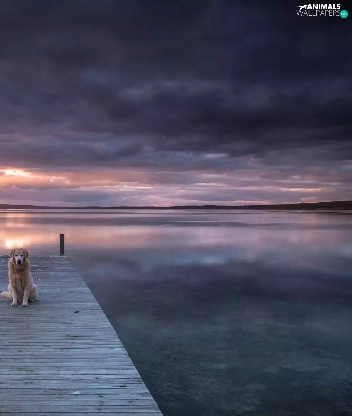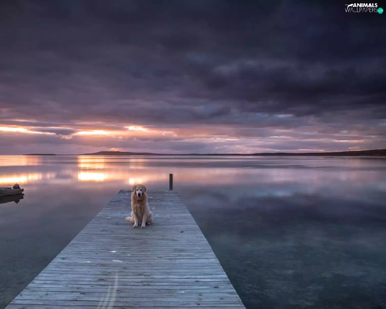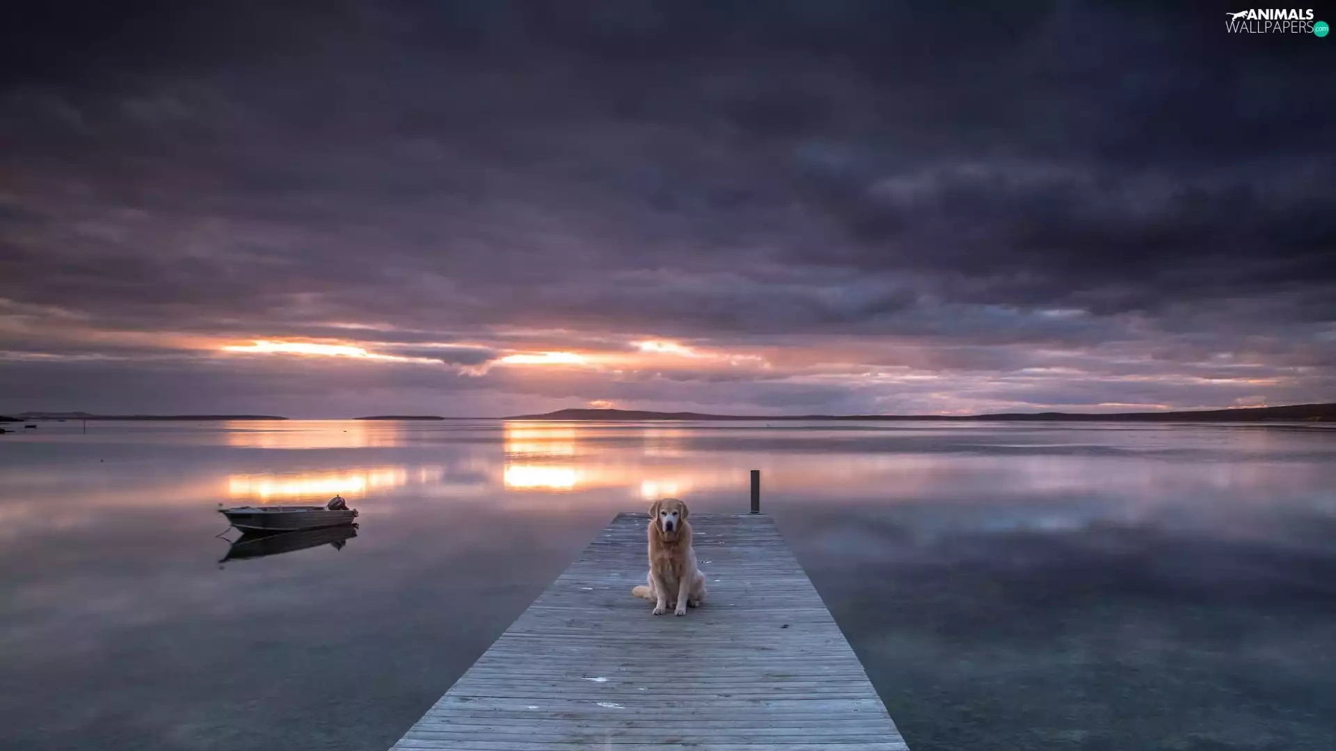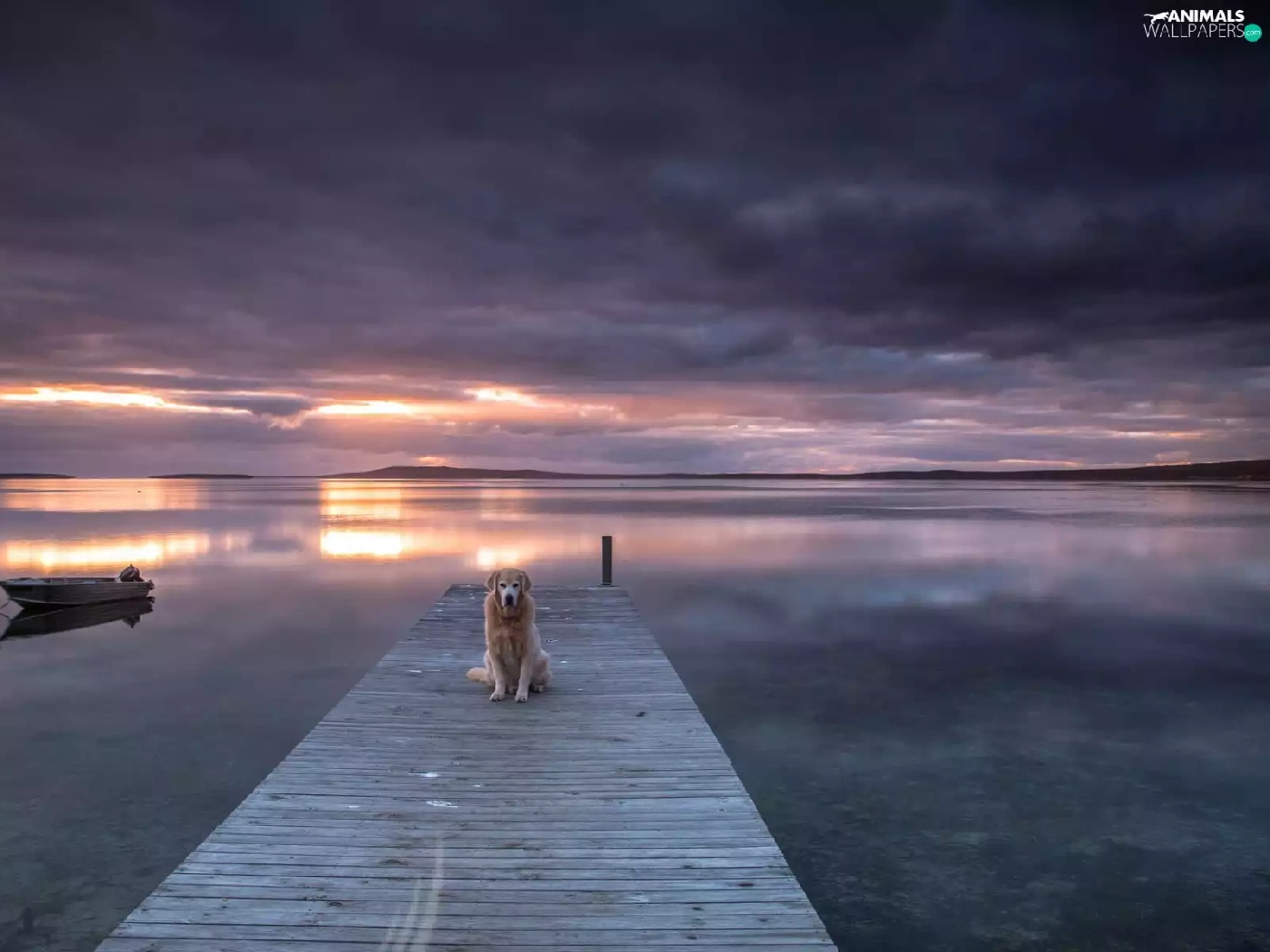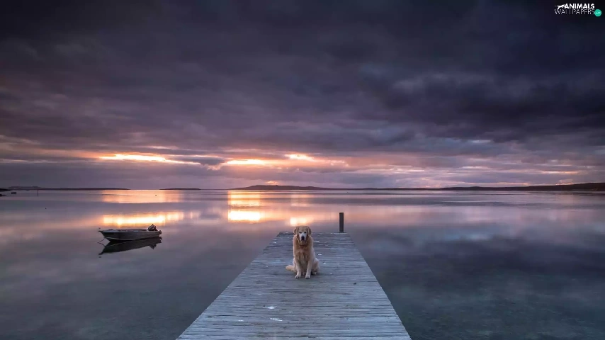 sea, Boat, Great Sunsets, dog