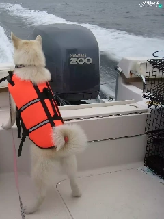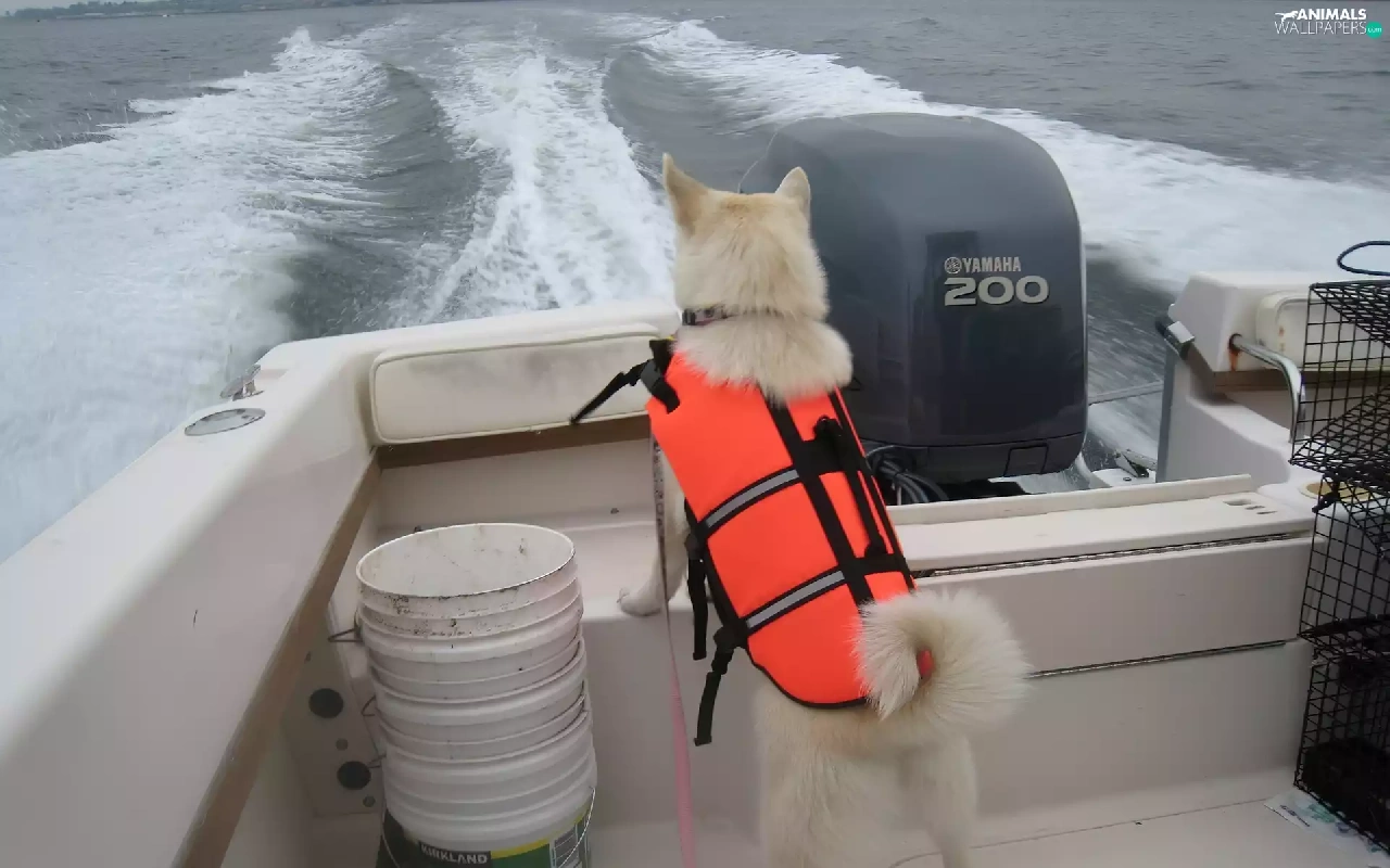 Motor boat, Norsk Buhund, Waves