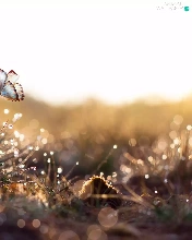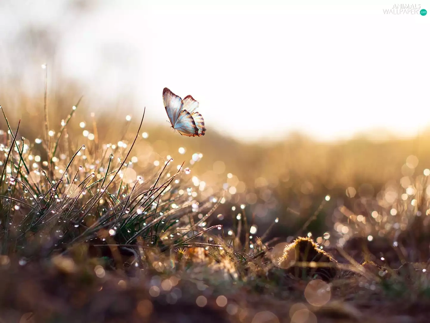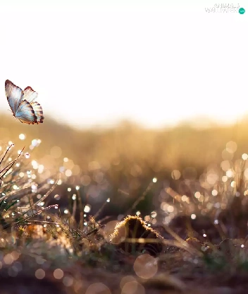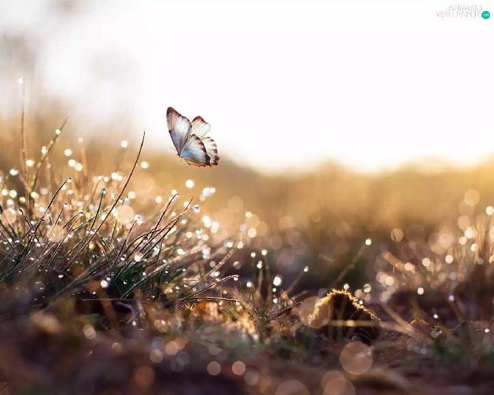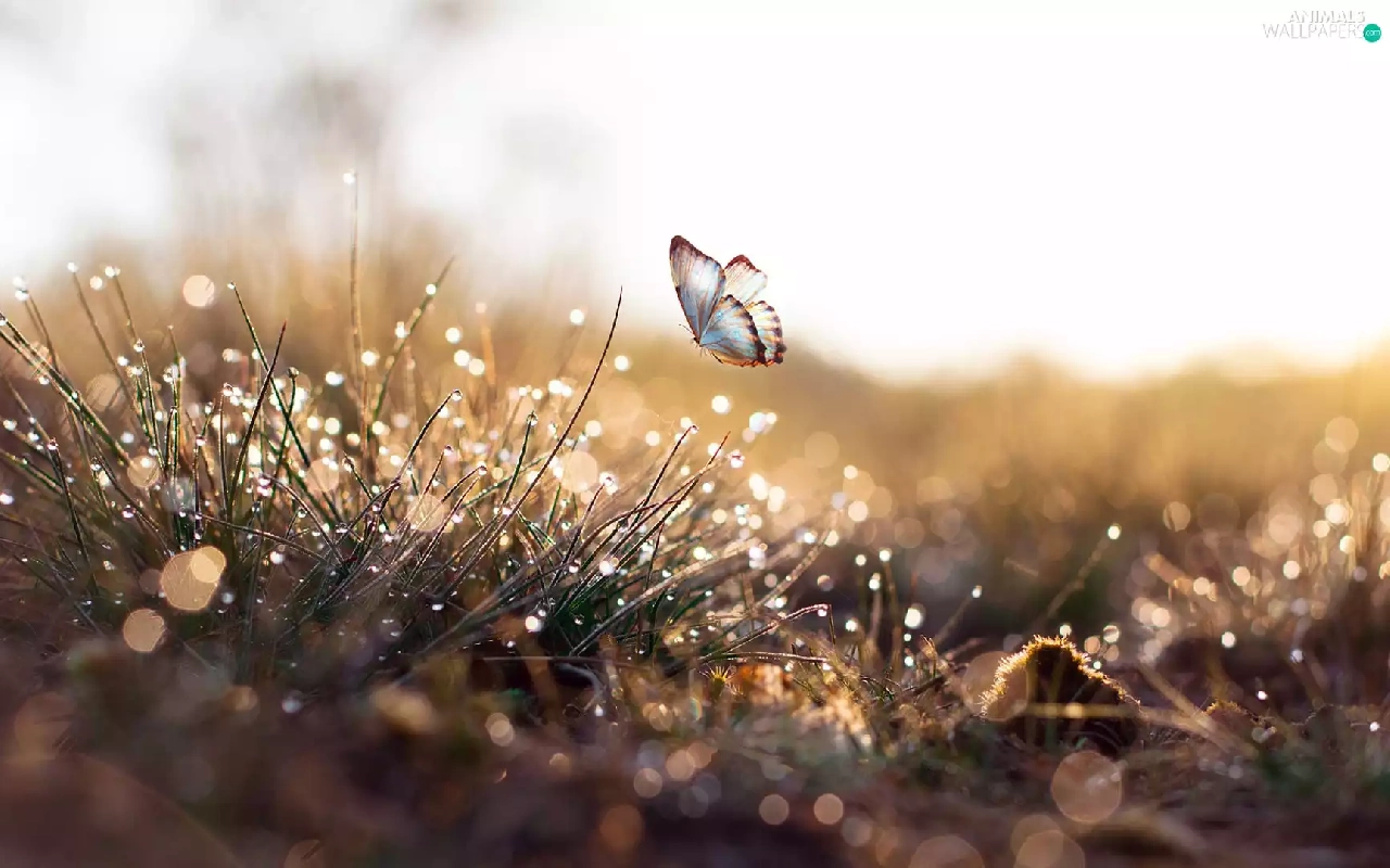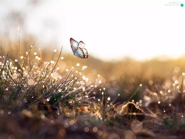 butterfly, Bokeh, drops, graphic, grass