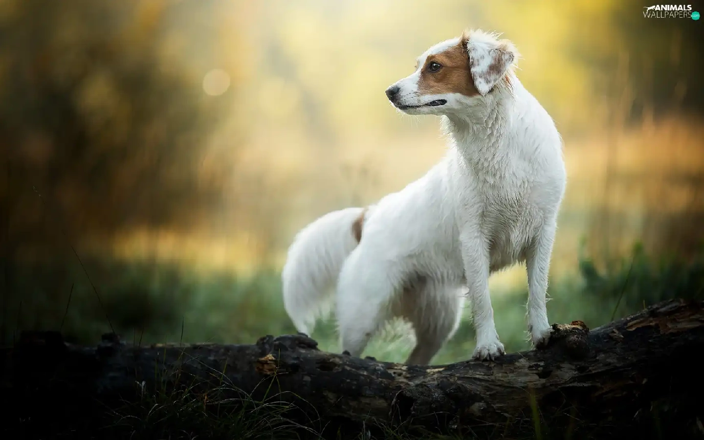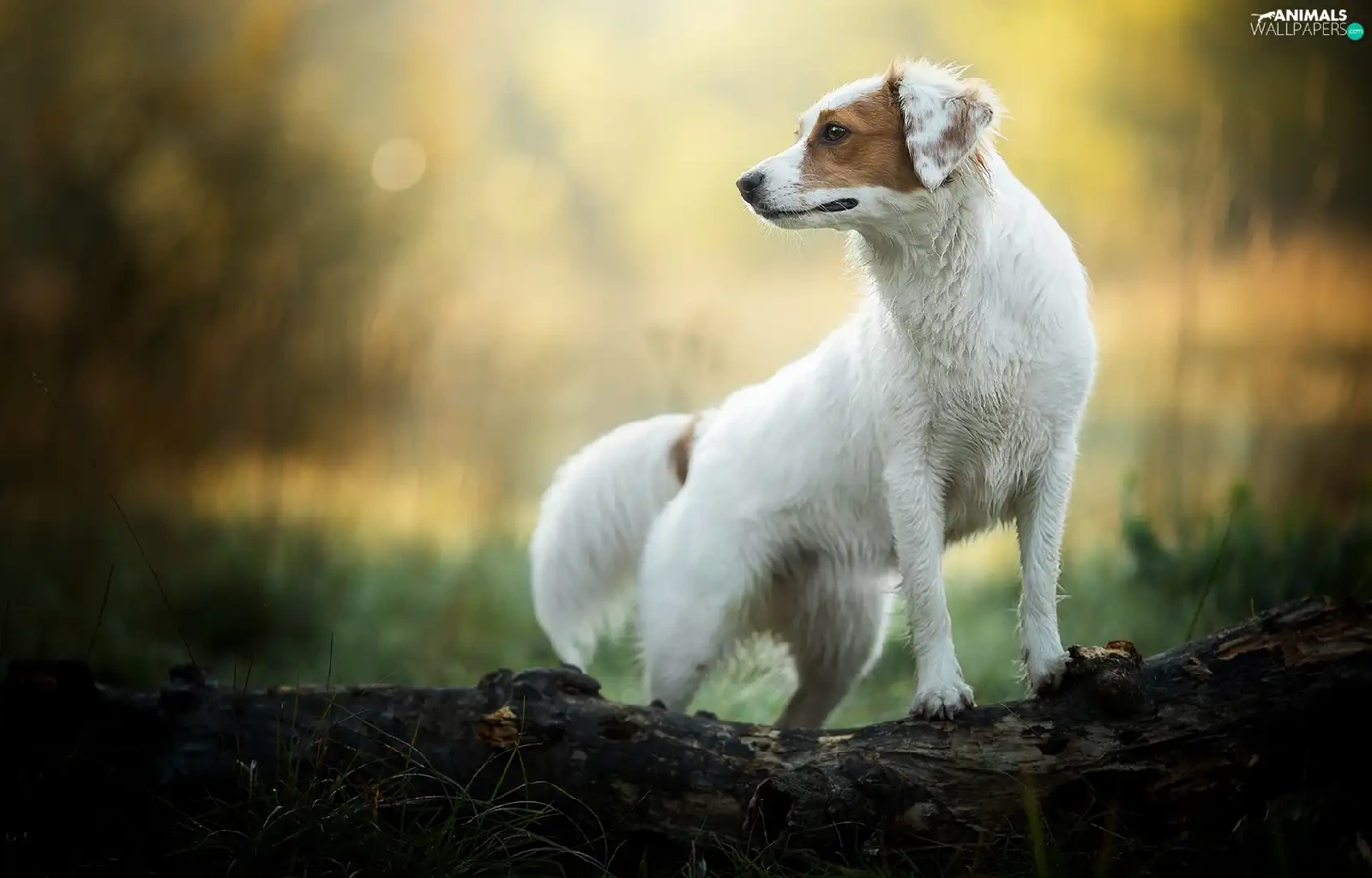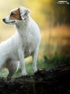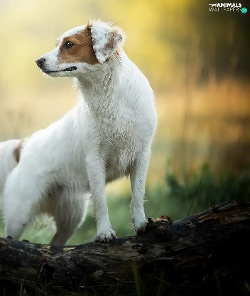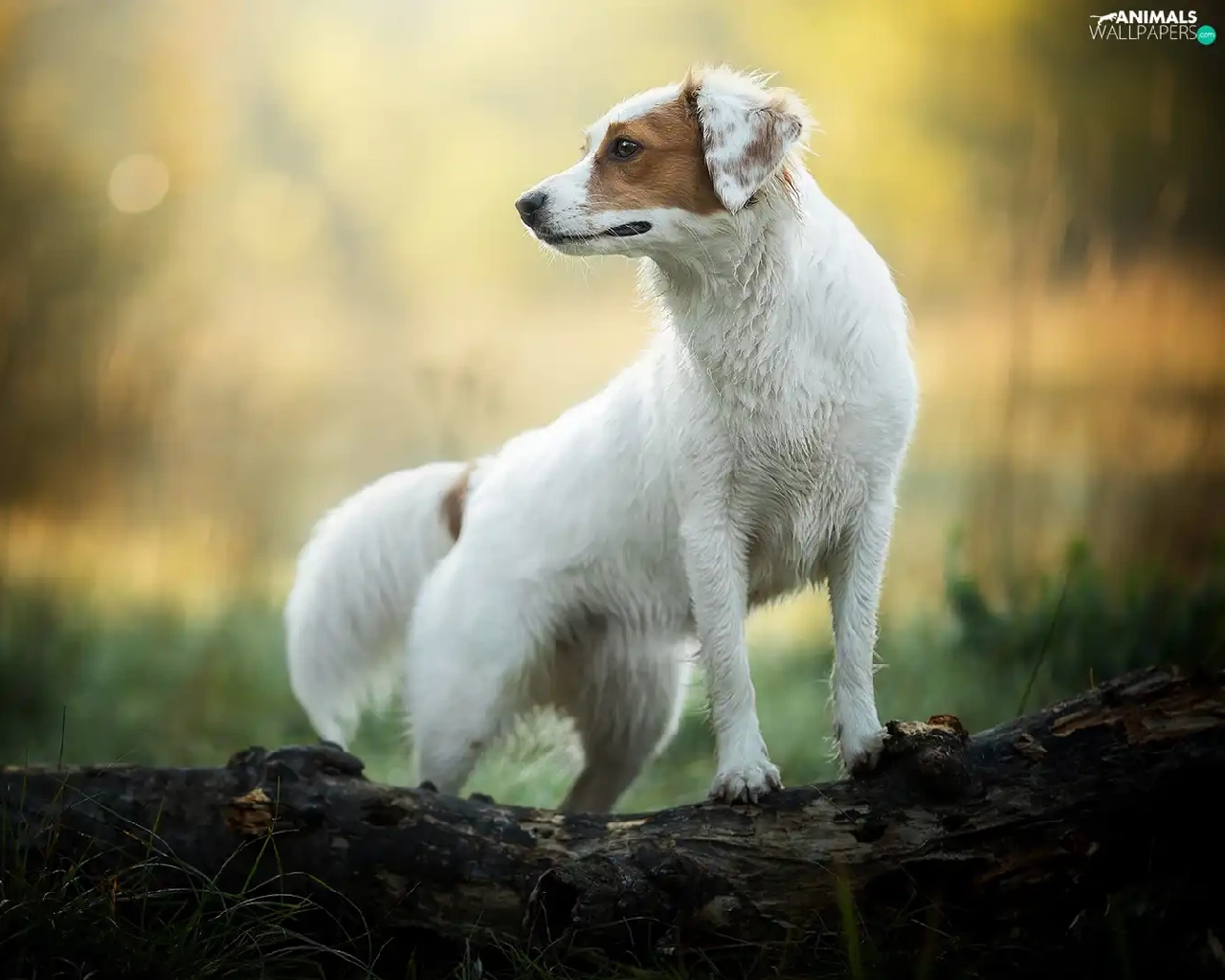 Brown, dog, log, Bokeh, patch, White