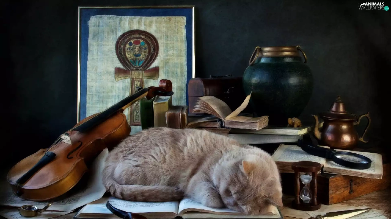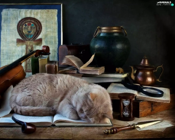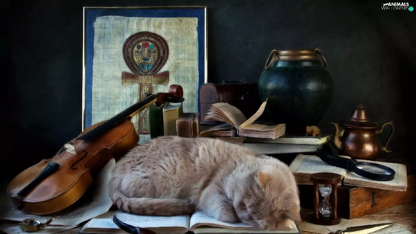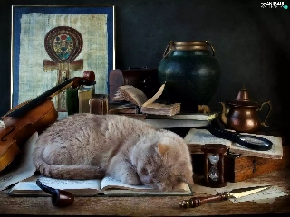 cat, pipe, violin, Book