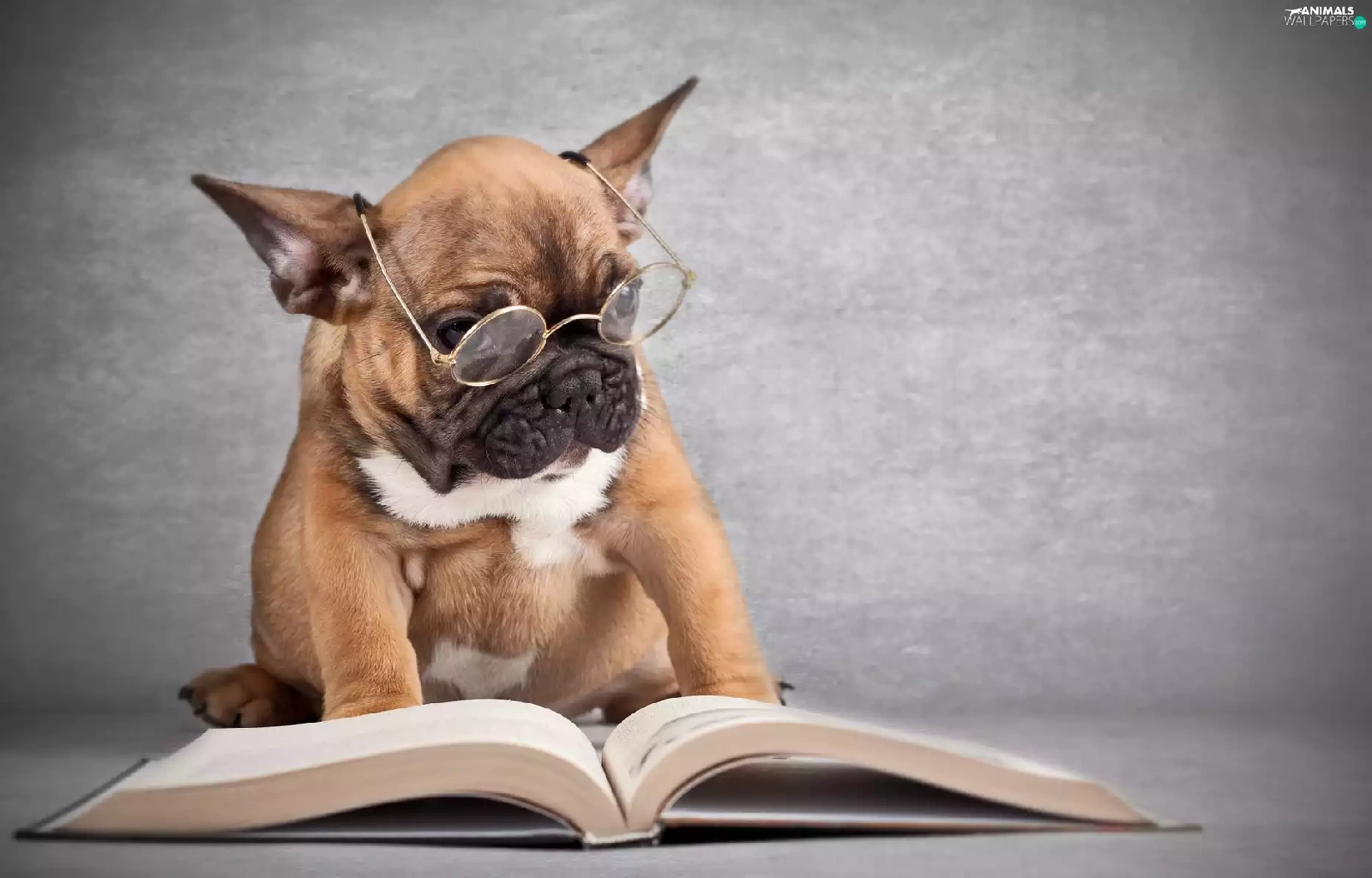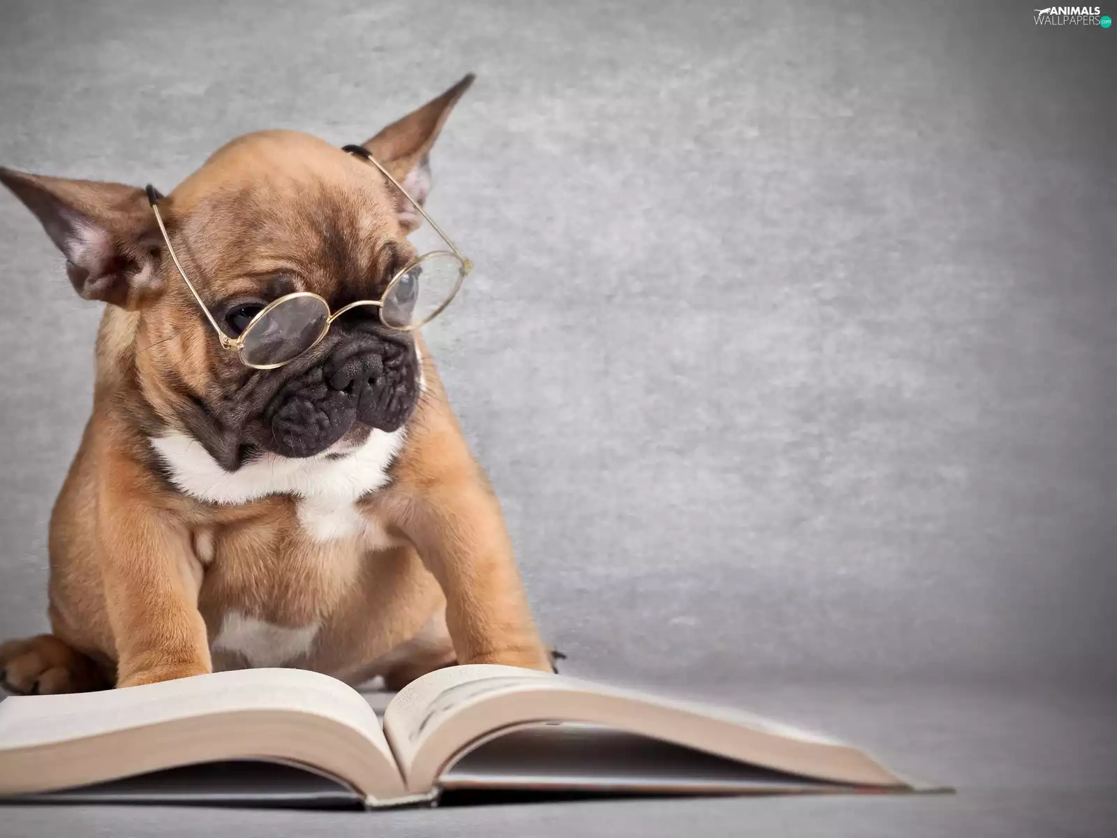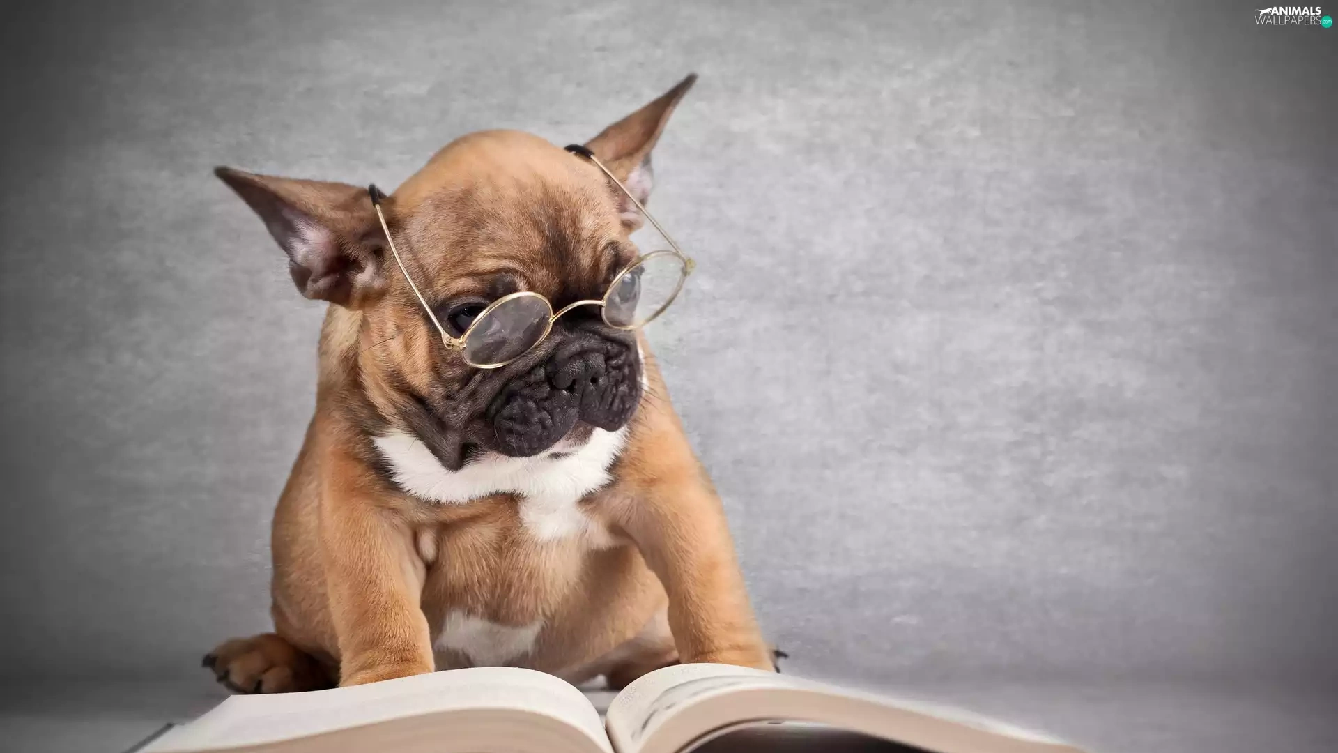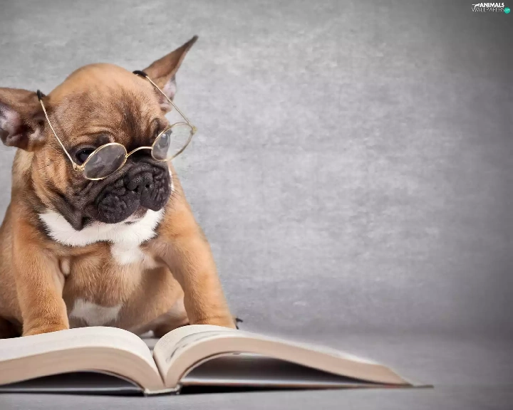 dog, Book, French Bulldog, Glasses