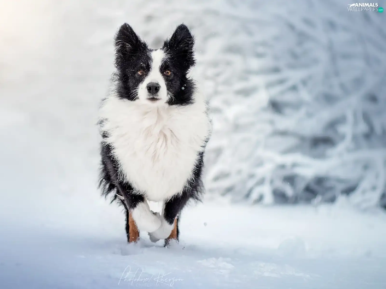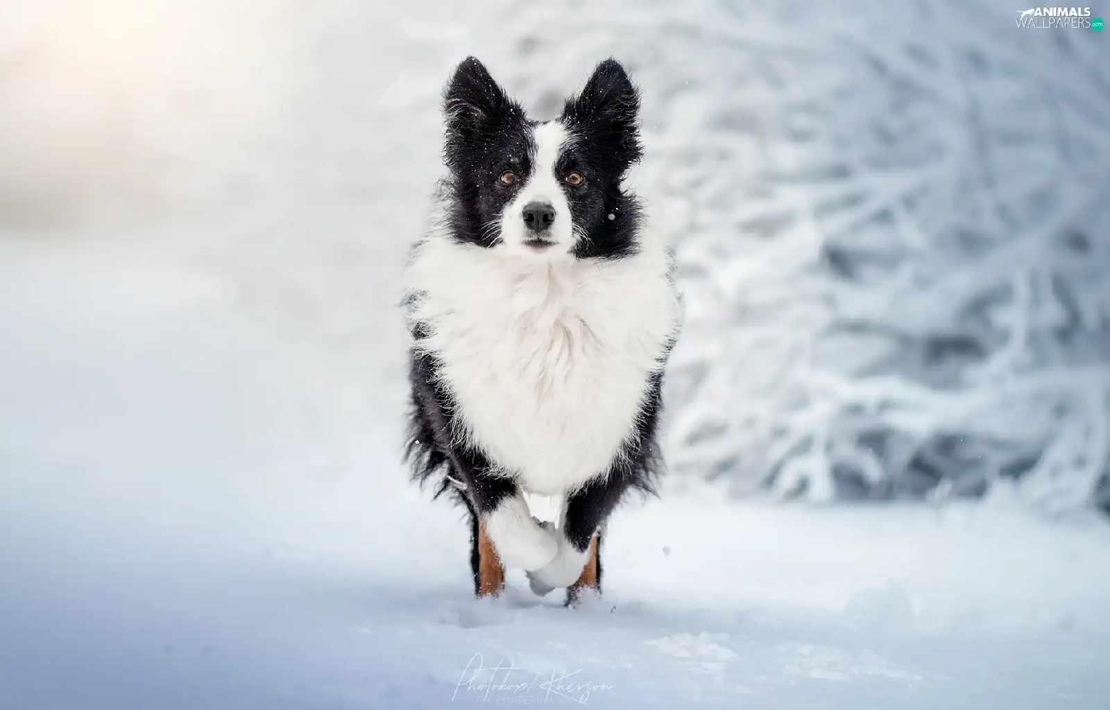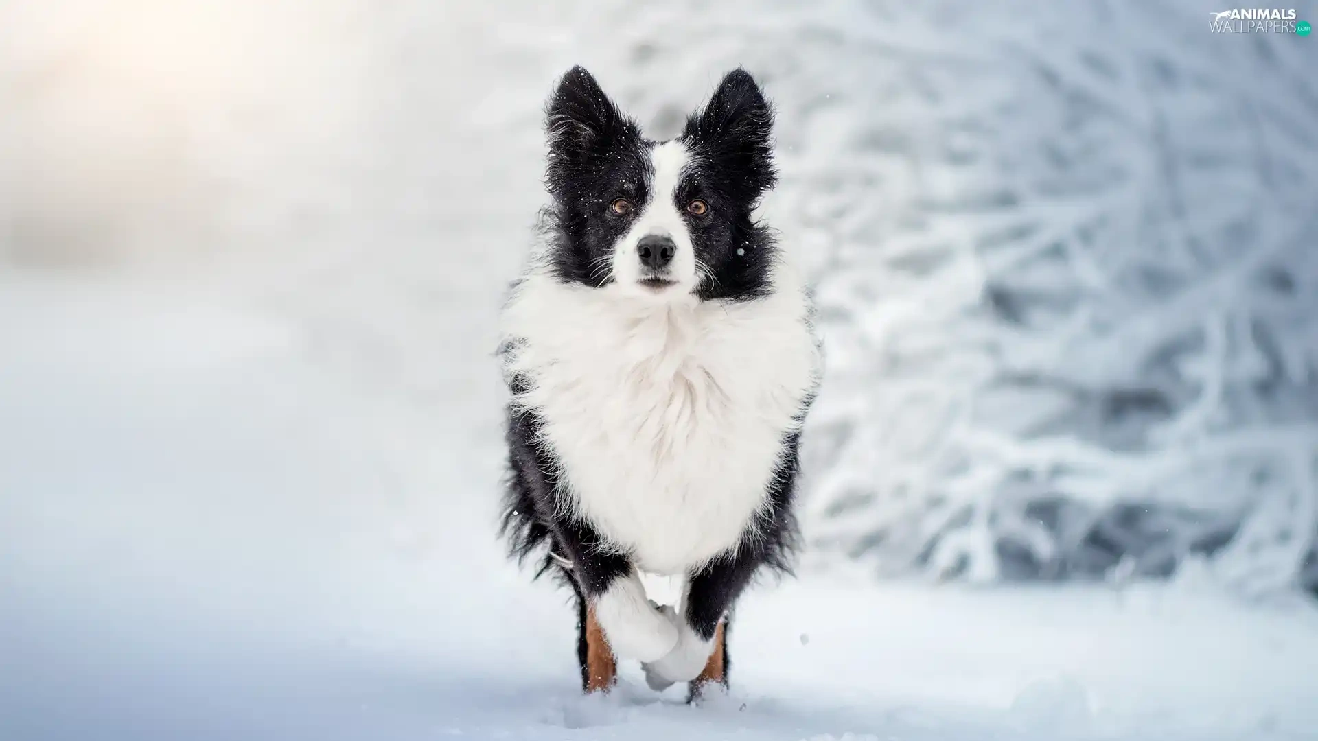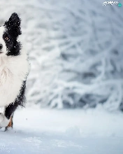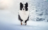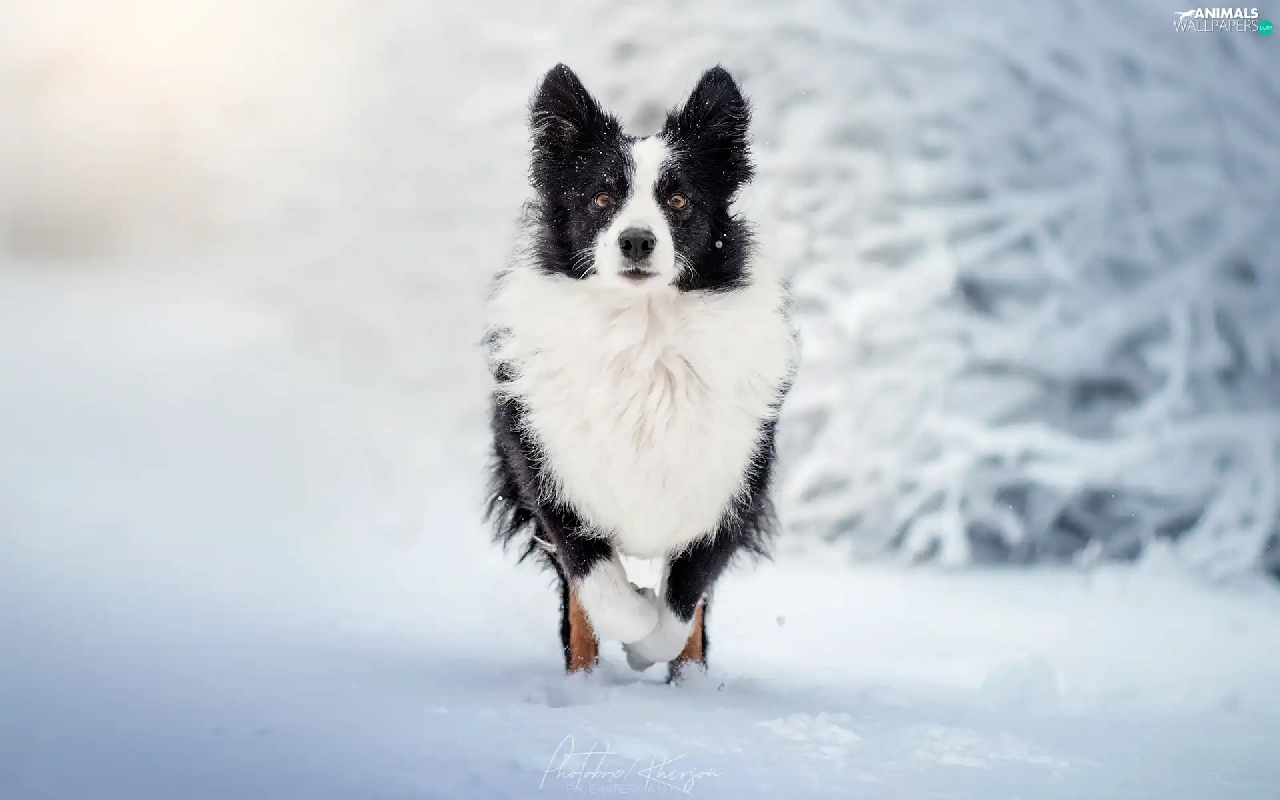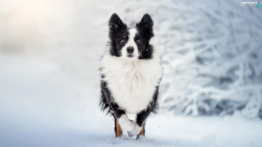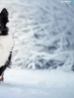 White and Black, Border Collie, snow, dog