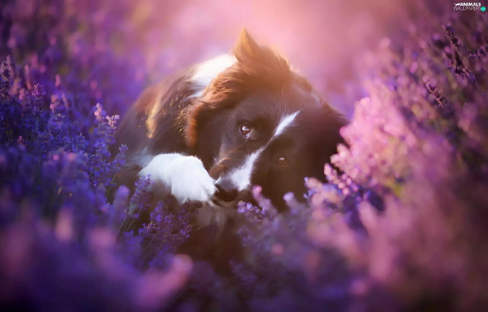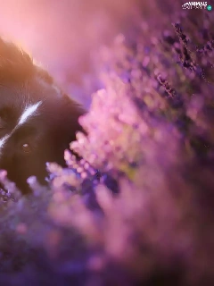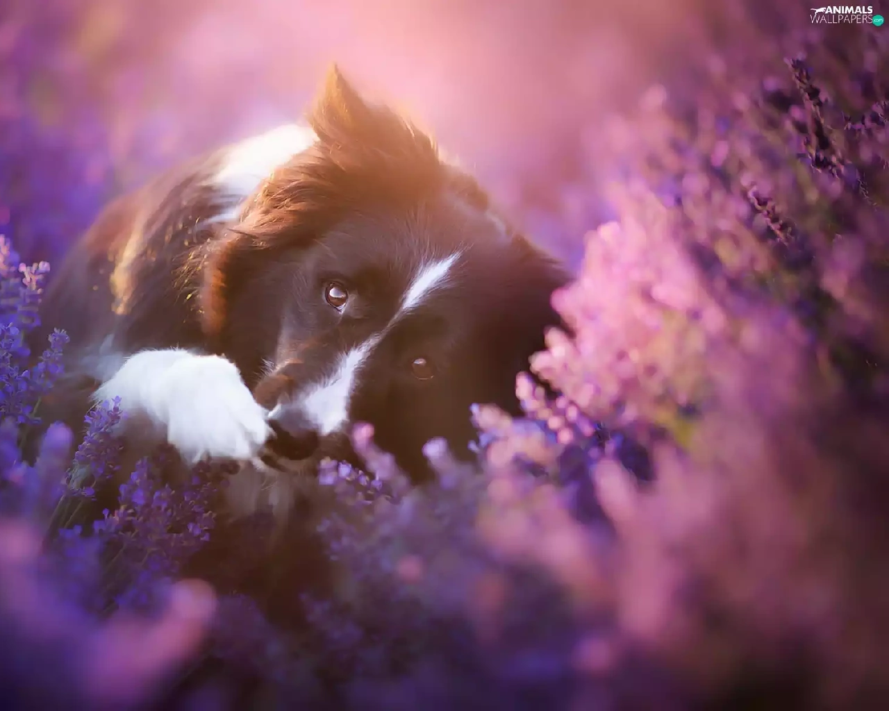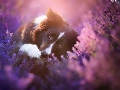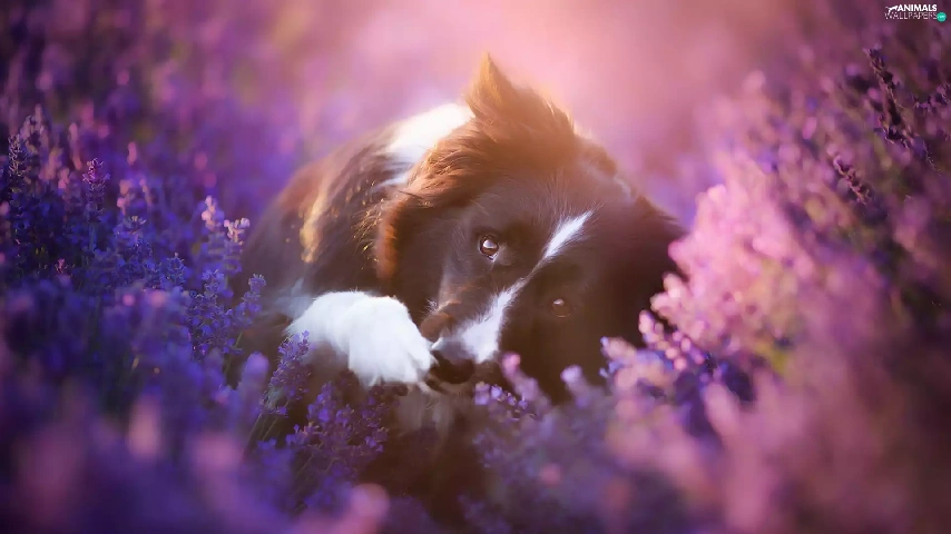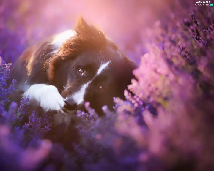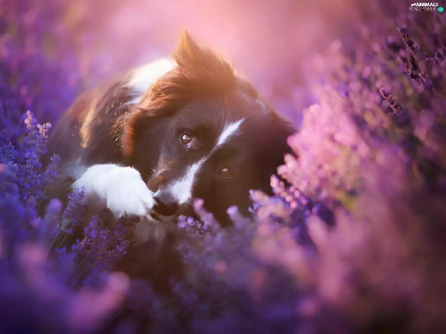 dog, Border Collie, heather, Flowers