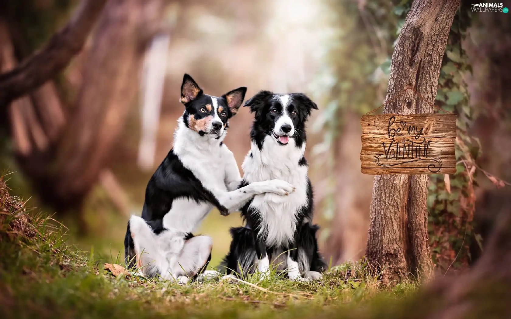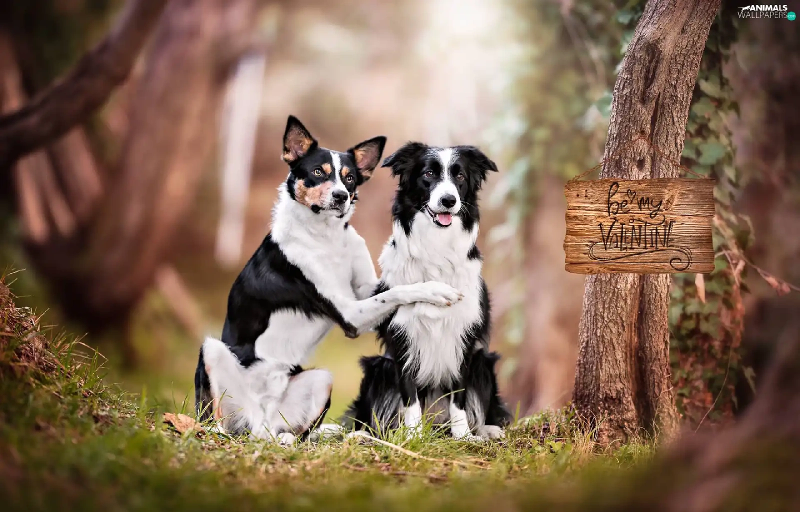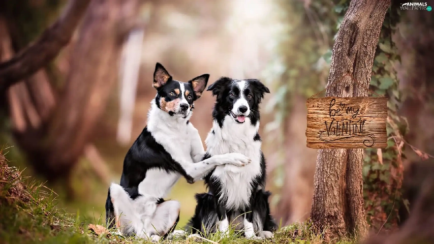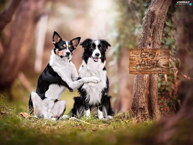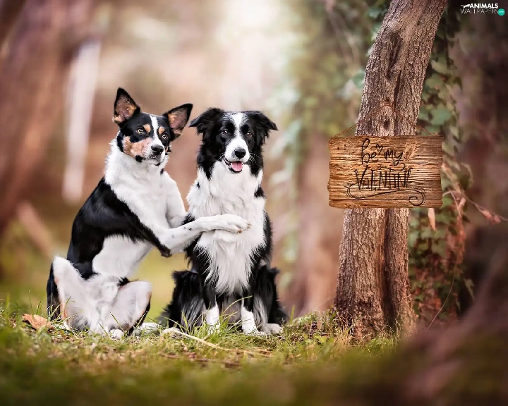 Two cars, mongrel, Border Collie, Dogs