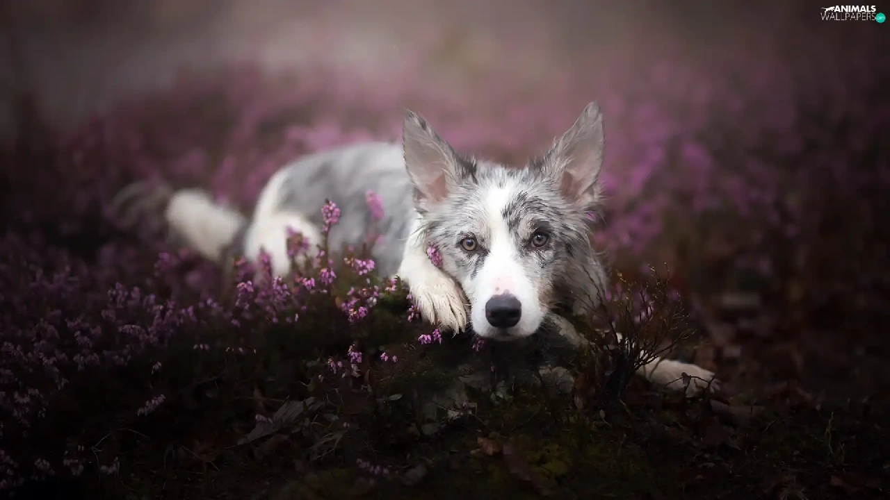 heather, lying, Border Collie