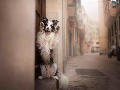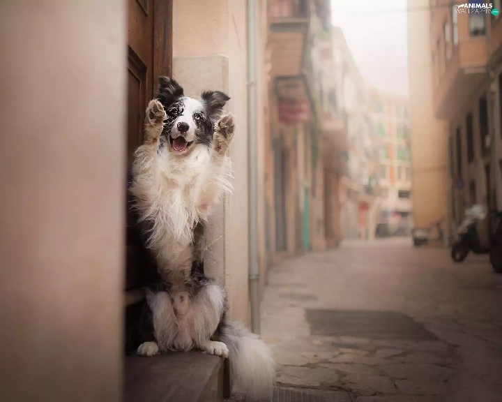 alley, apartment house, Border Collie, attitude, dog