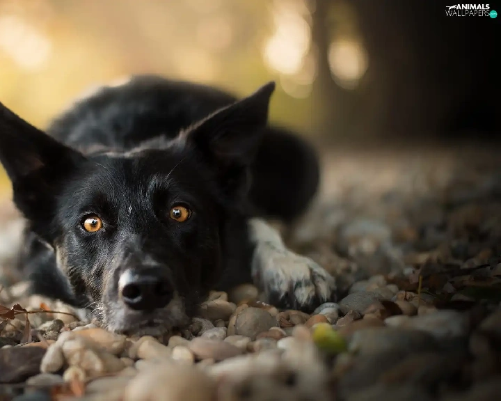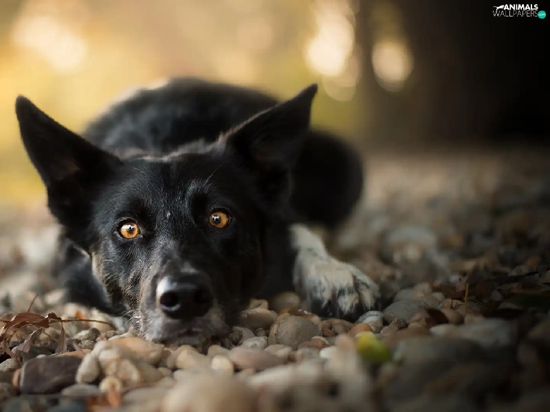 muzzle, Stones, dog, Border Collie, lying