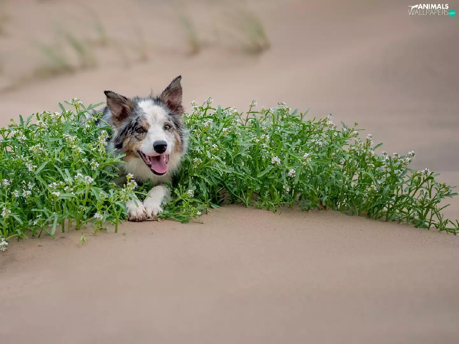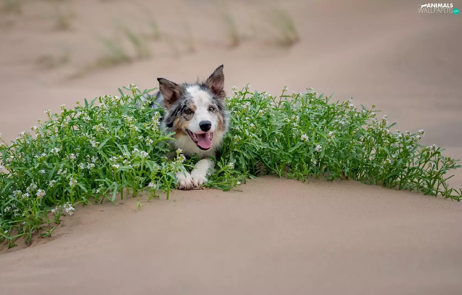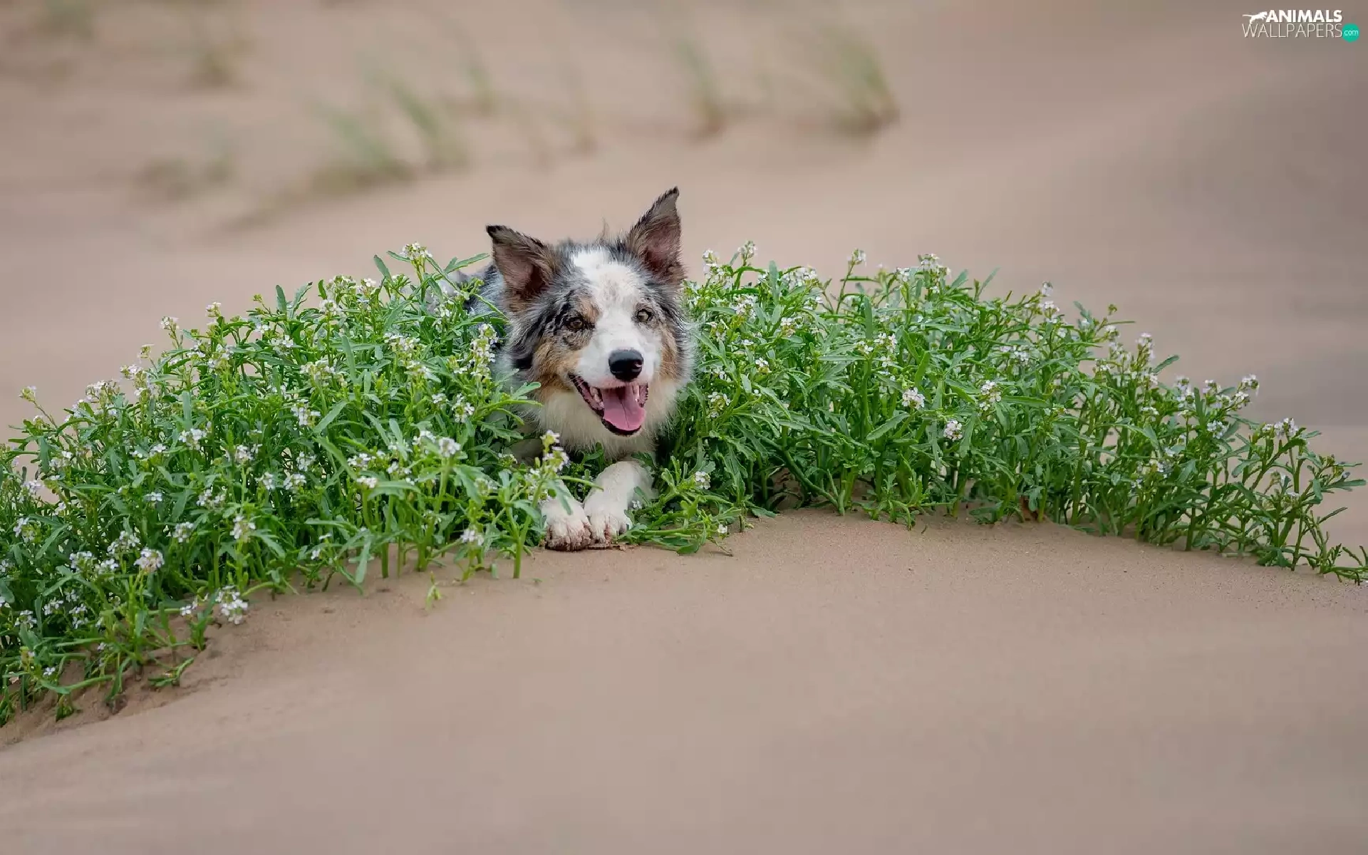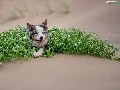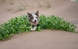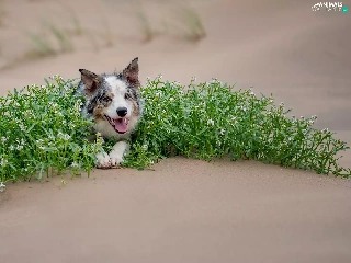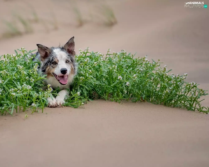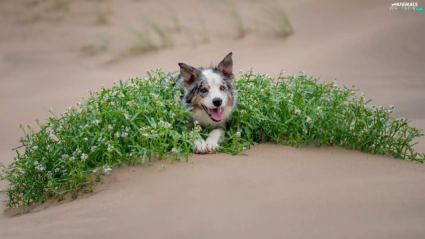 green ones, Plants, Border Collie, Sand, dog