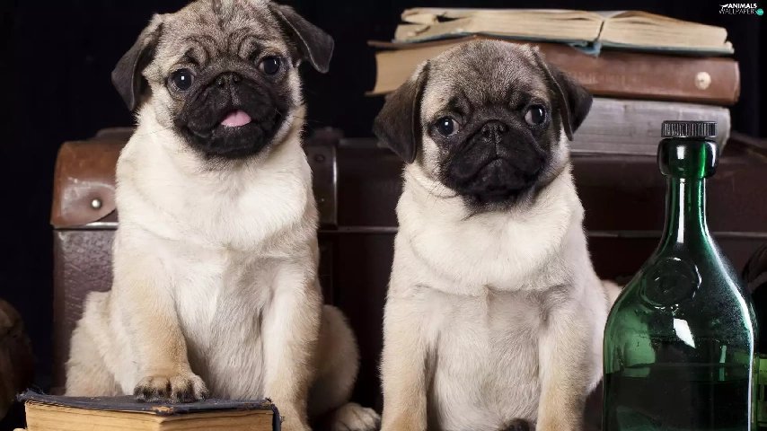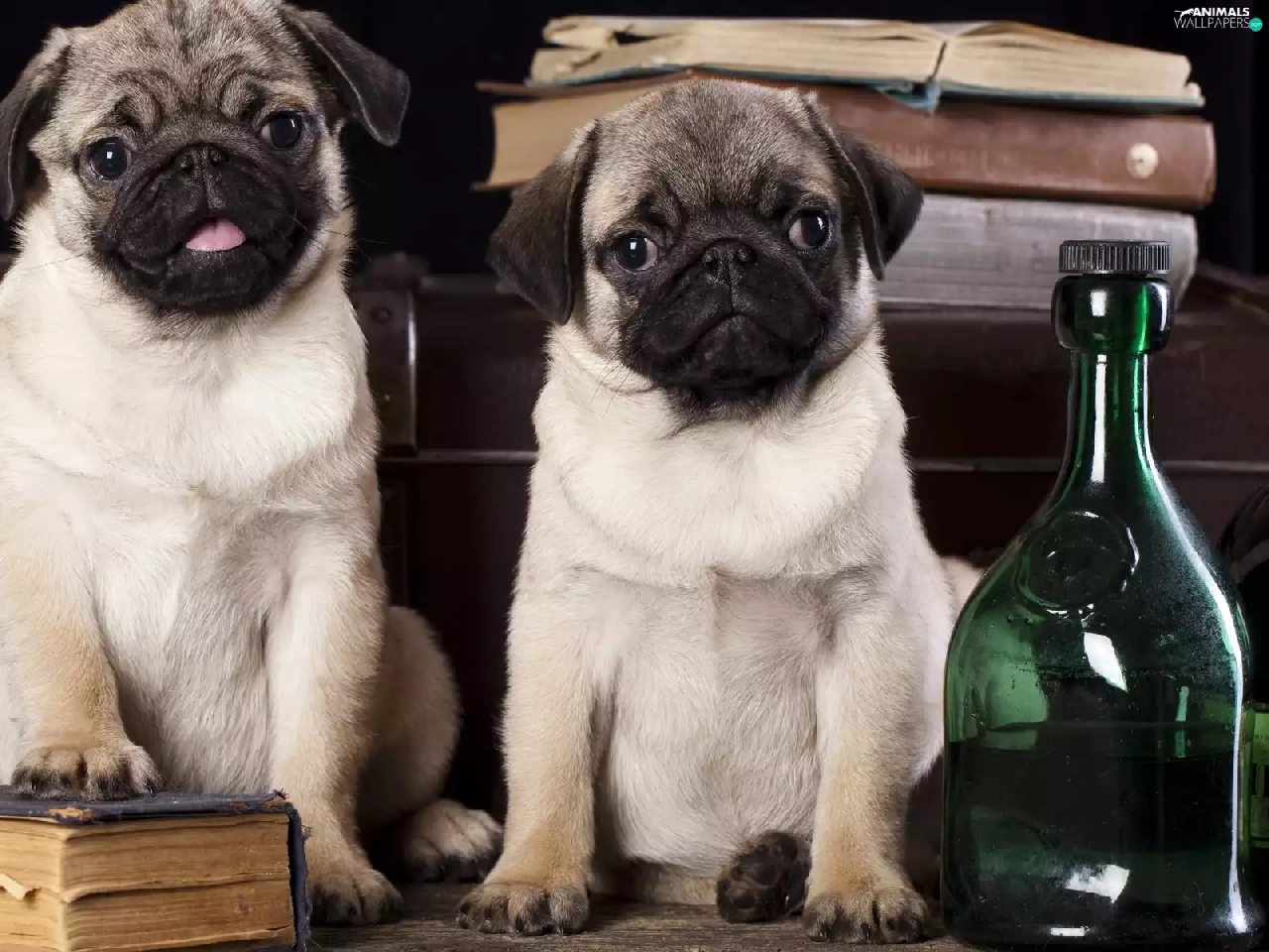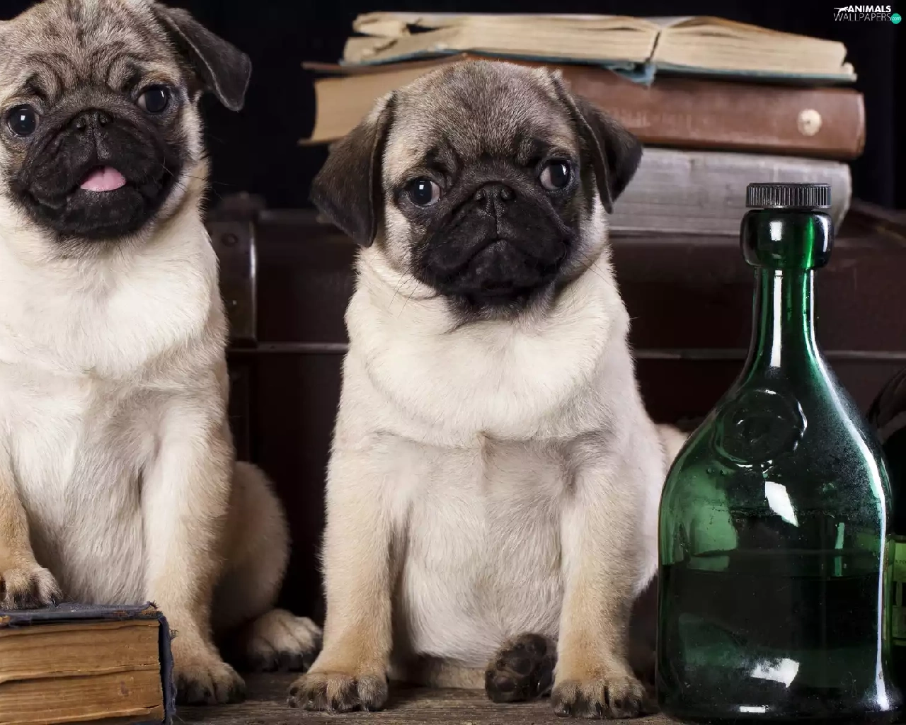 Bottles, Dogs, pugs