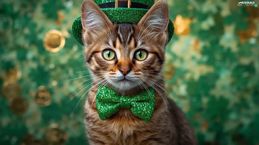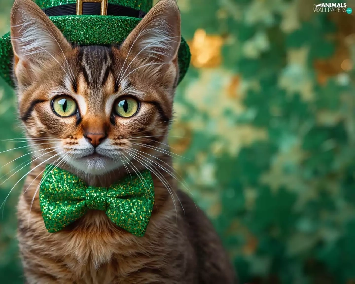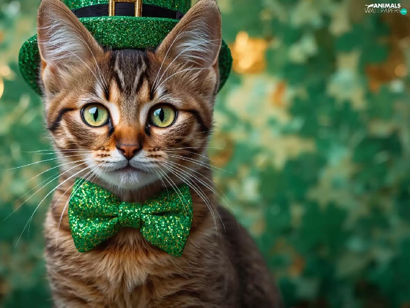 cylinder, Ai, Green, bow tie, cat