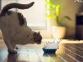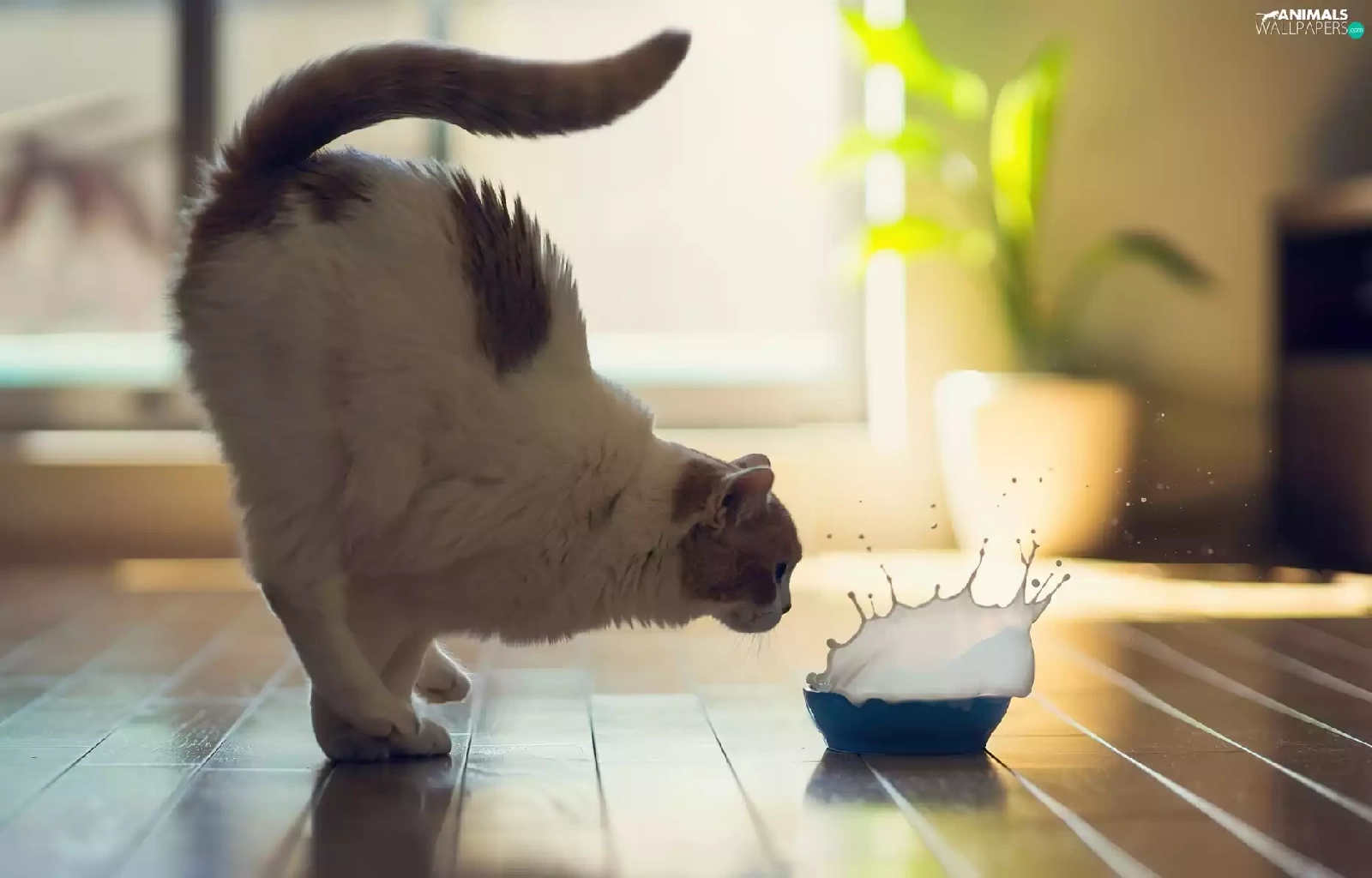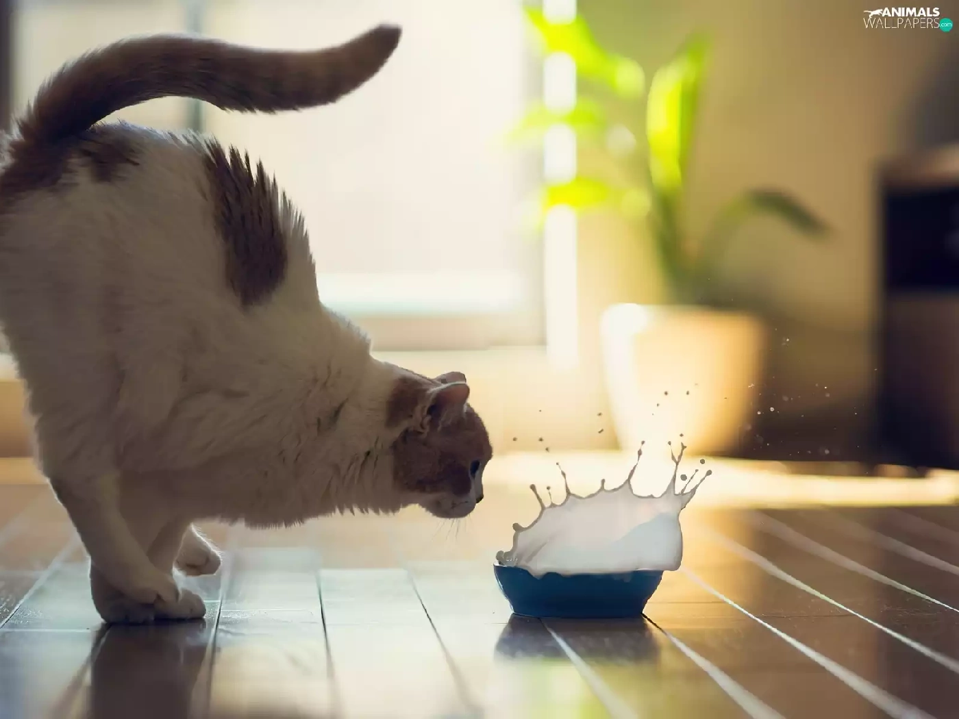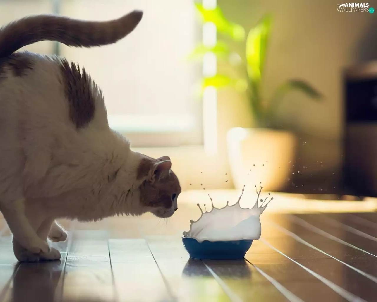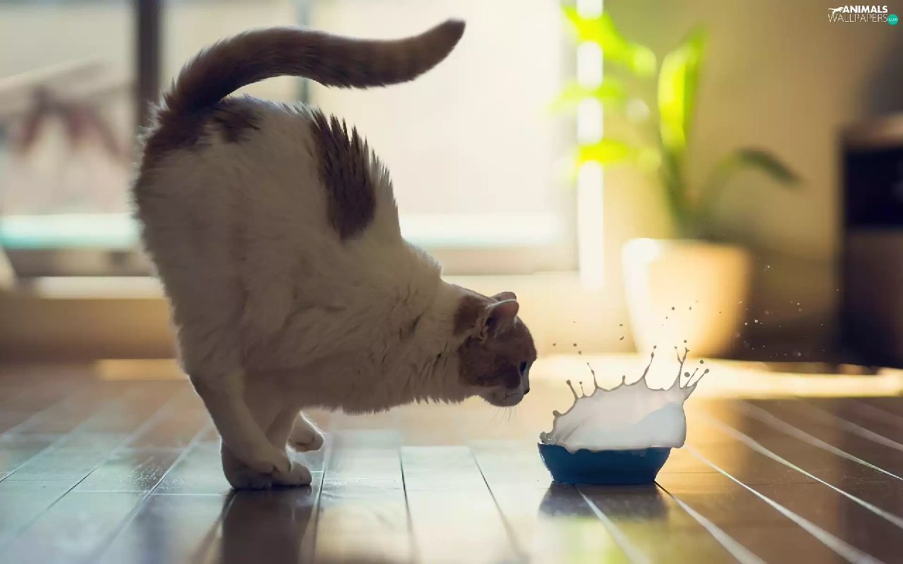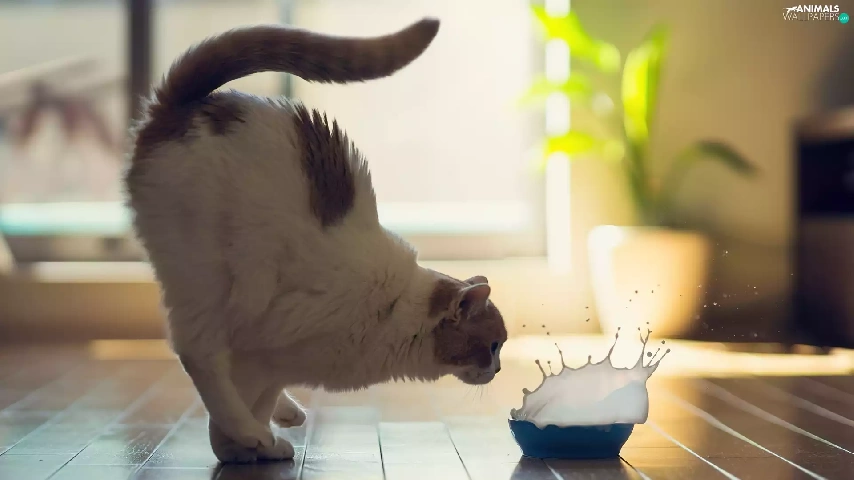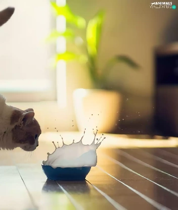 bowl, cat, milk