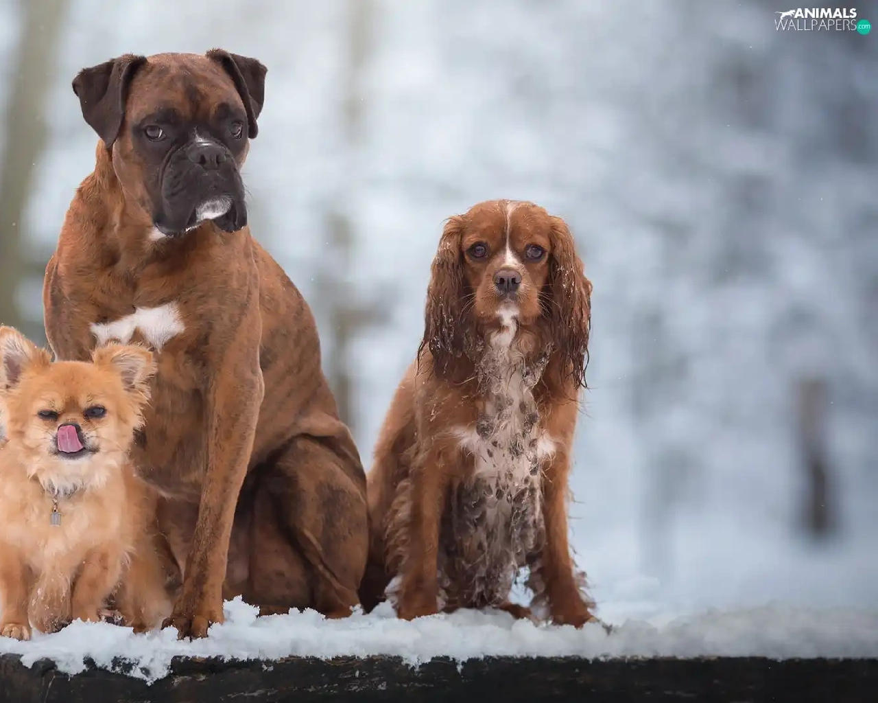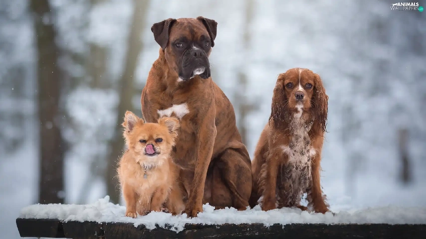 Three, boxer, Cocker Spaniel, Dogs