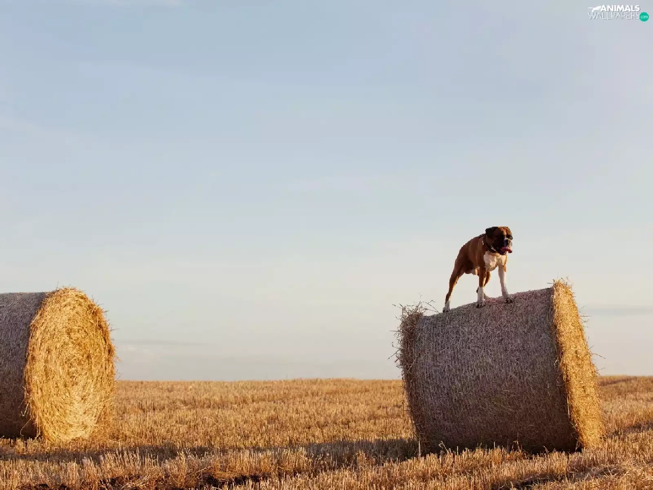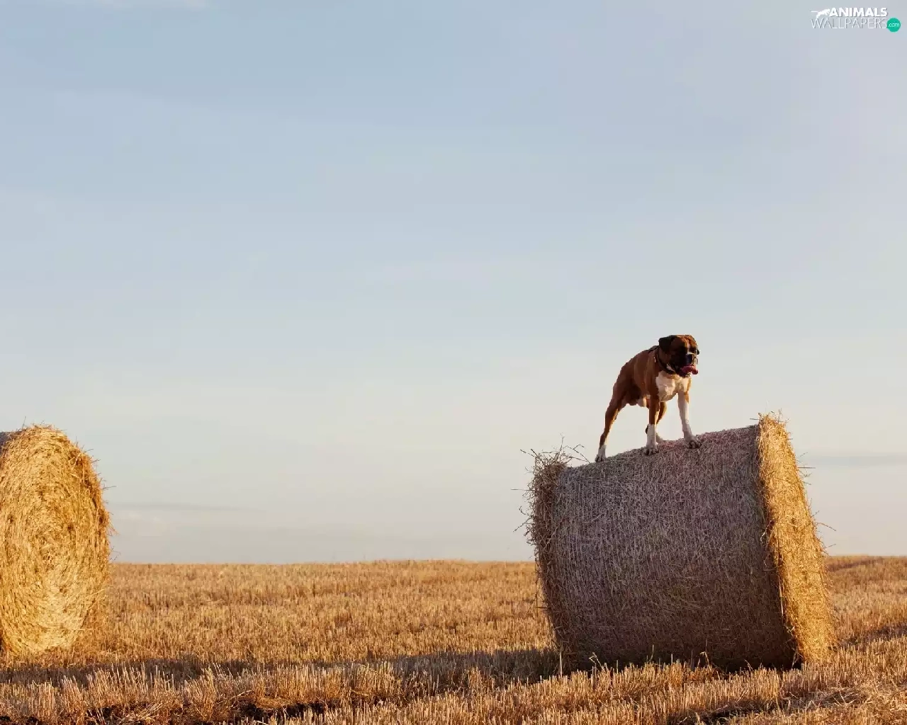 dog, Sky, Field, boxer