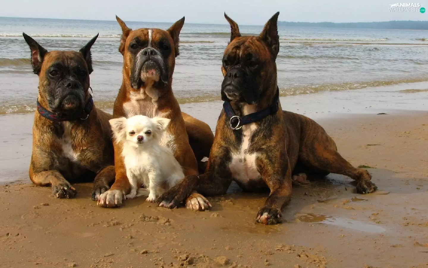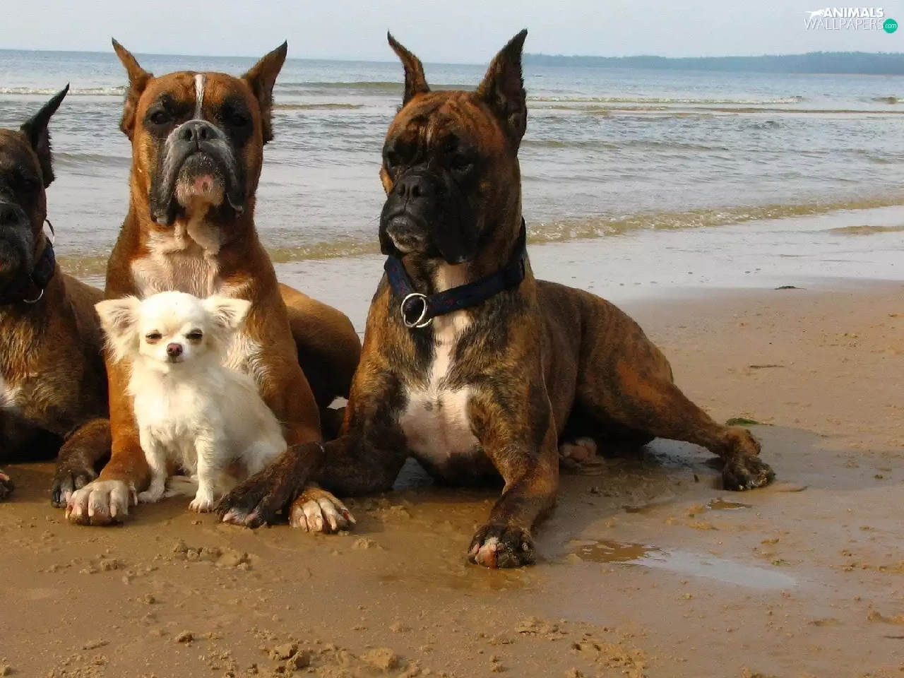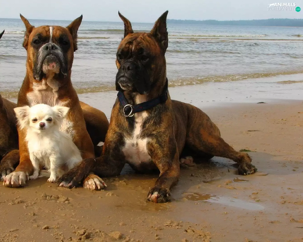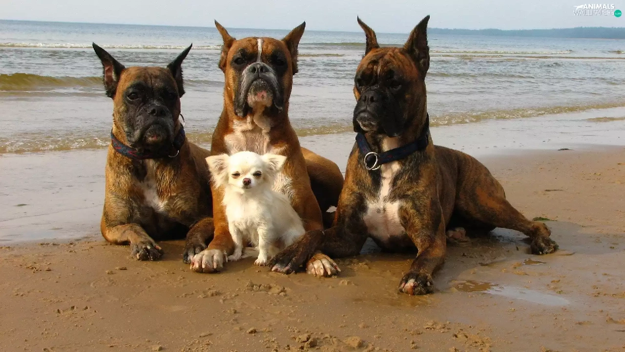 Three, small, doggy, boxers