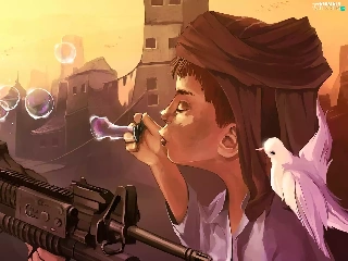 gun, interesting eyes, boy, pigeon, Cyril Rolando