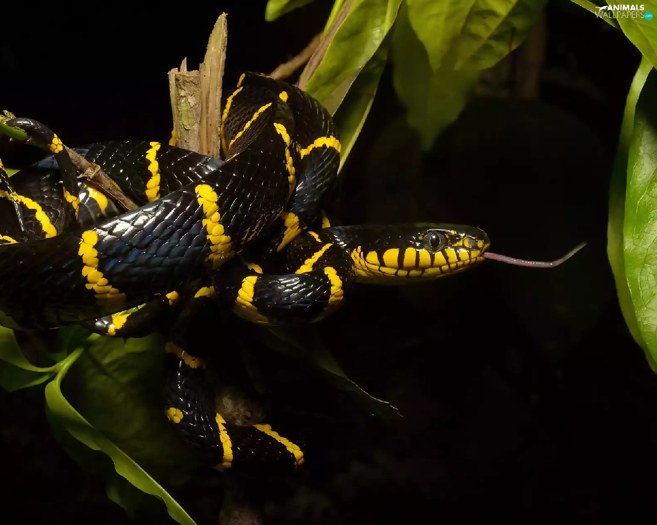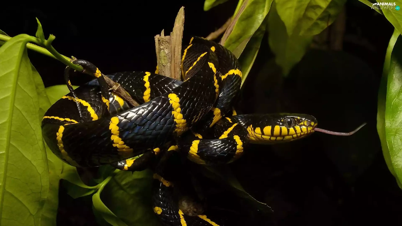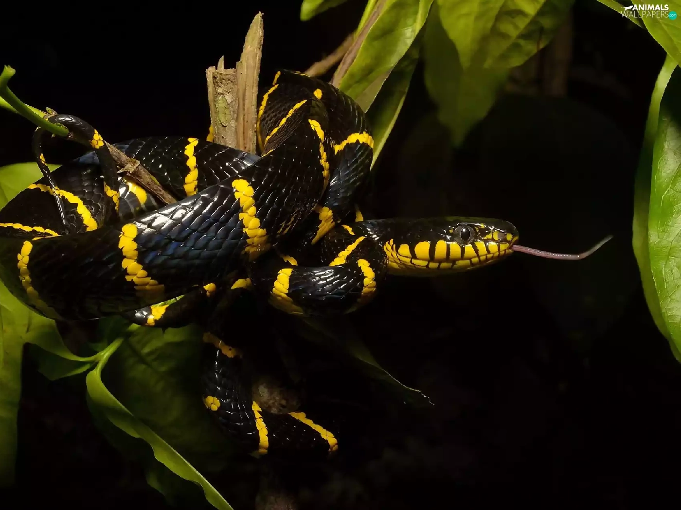 Leaf, Mangrove Snake, branch