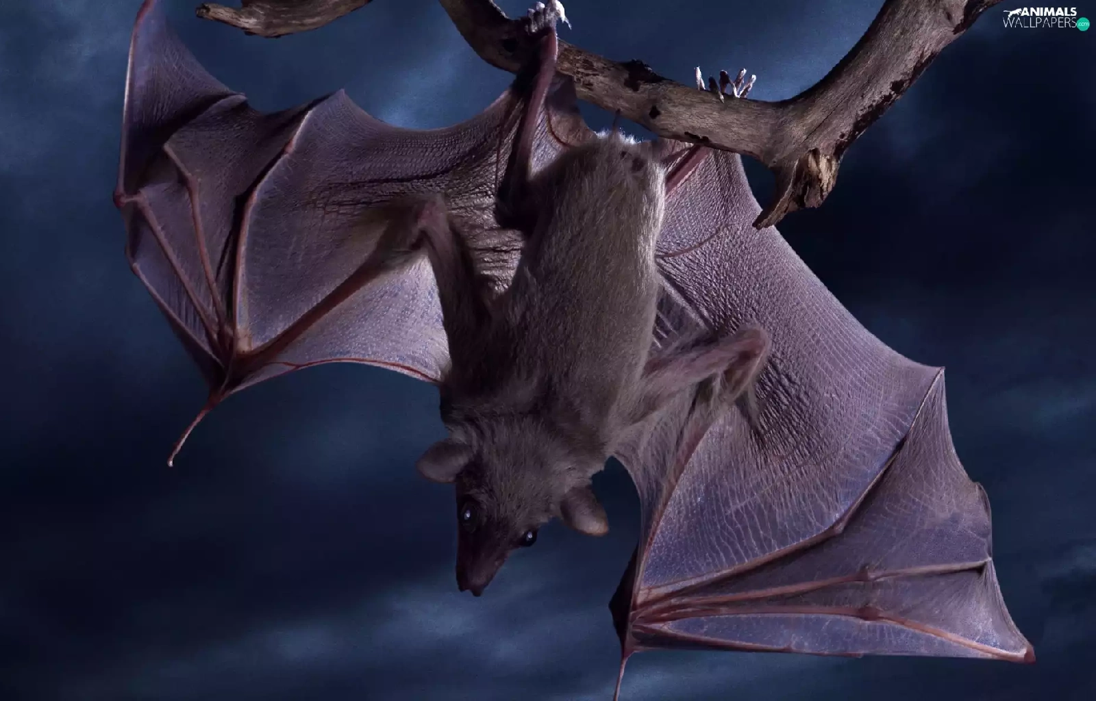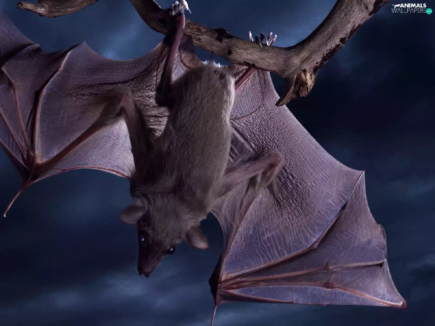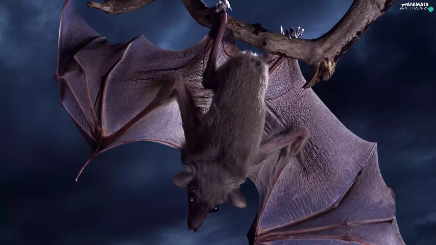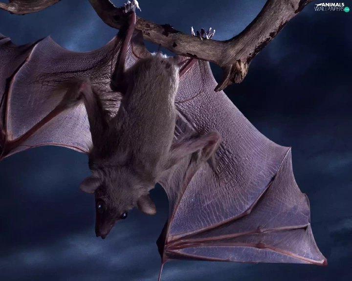 Night, droopy, bat, branch