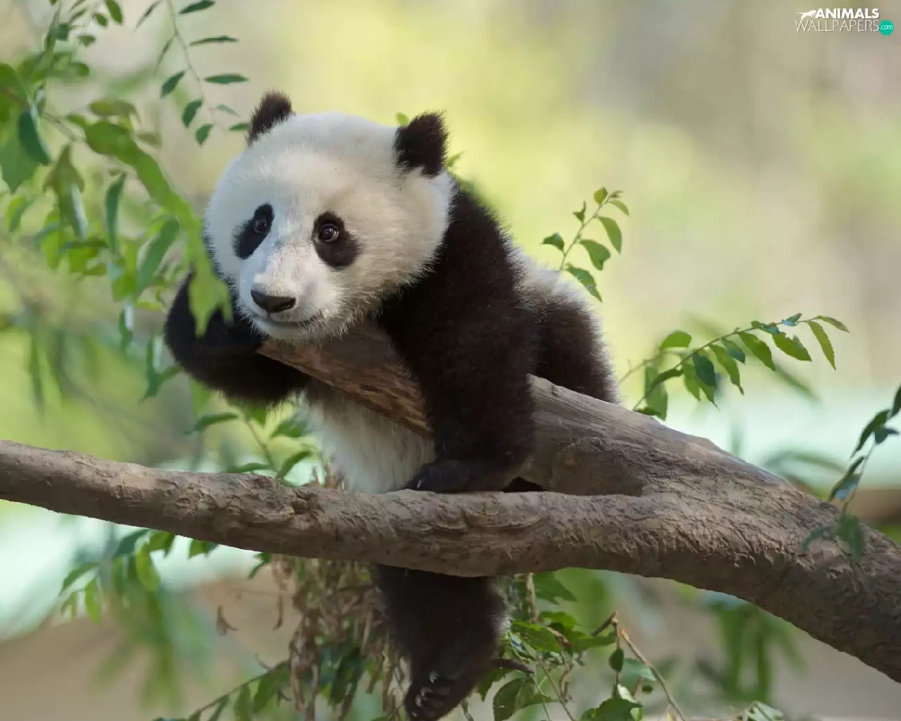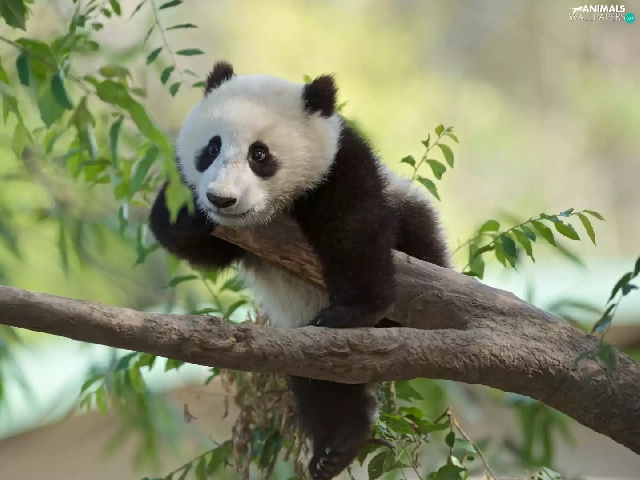 Panda, branch pics, Leaf, trees