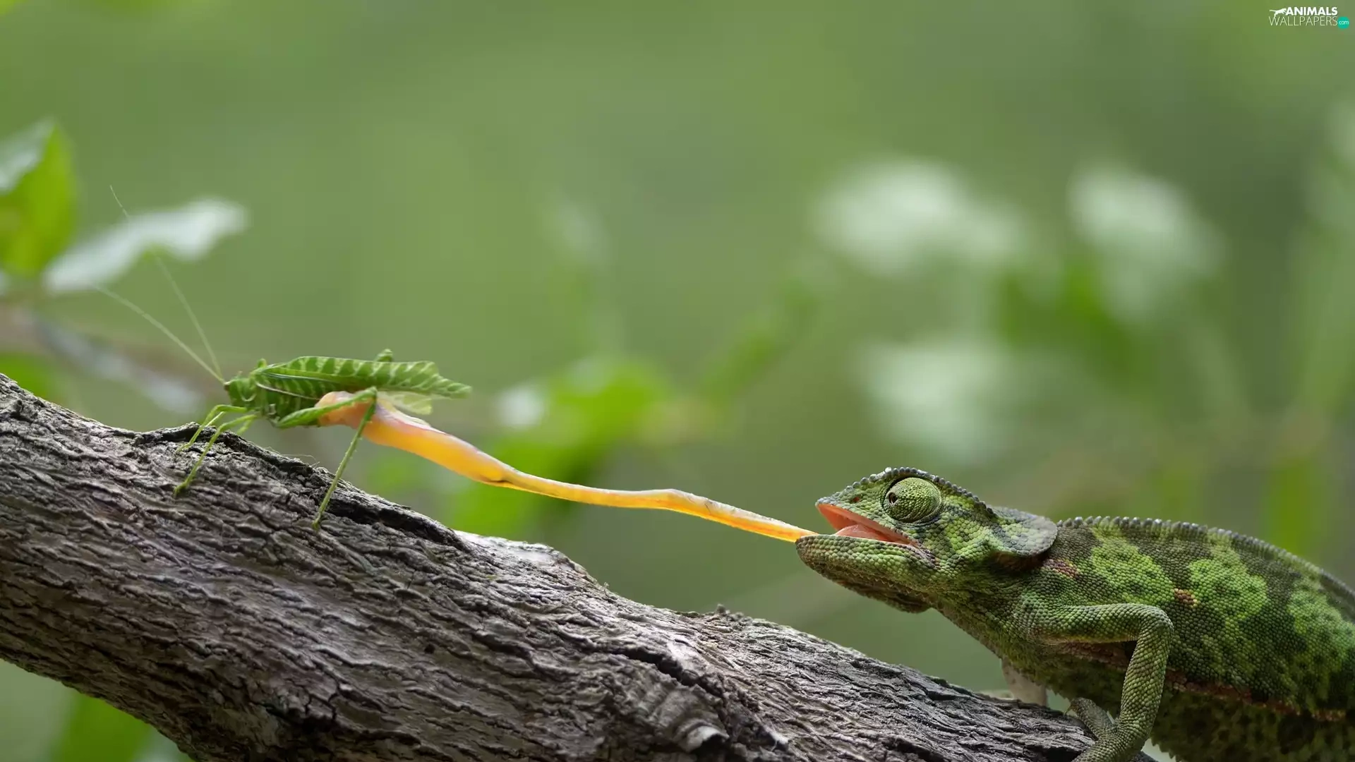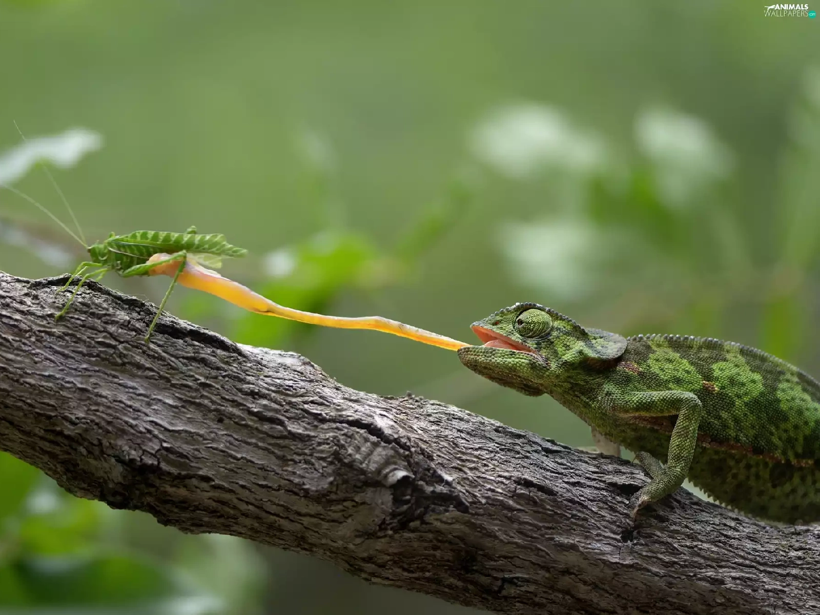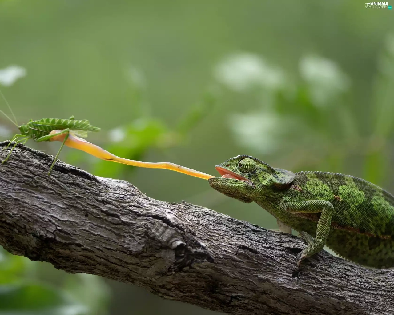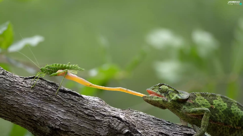 Insect, branch, Tounge, Green, Cameleon