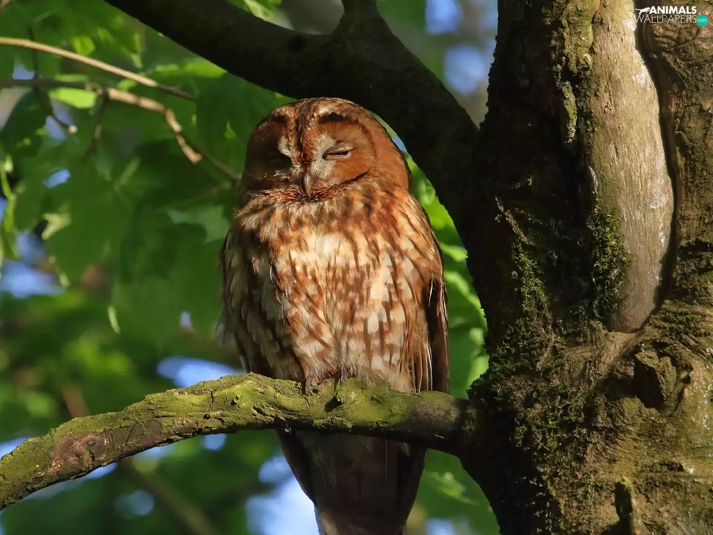 owl, branch, trees, Brown Owl