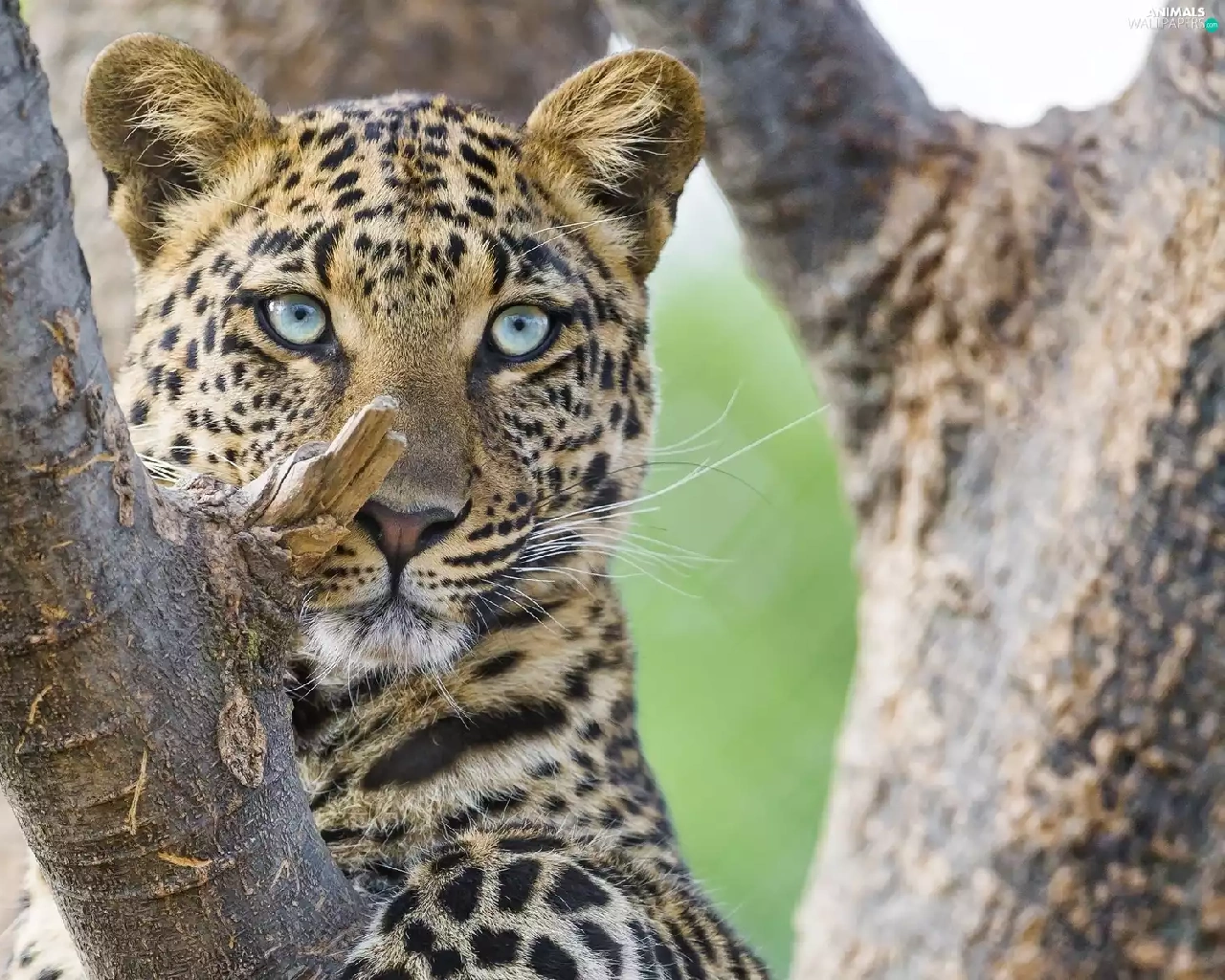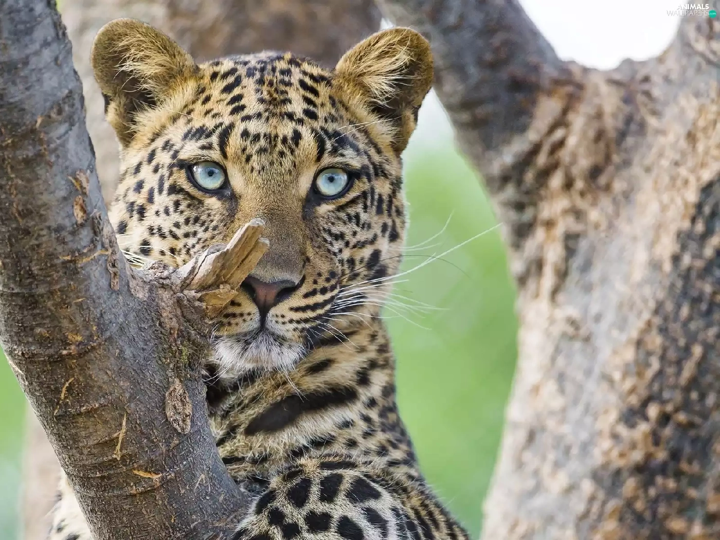 cat, Leopards, trees, branch, animal, wild