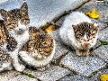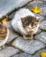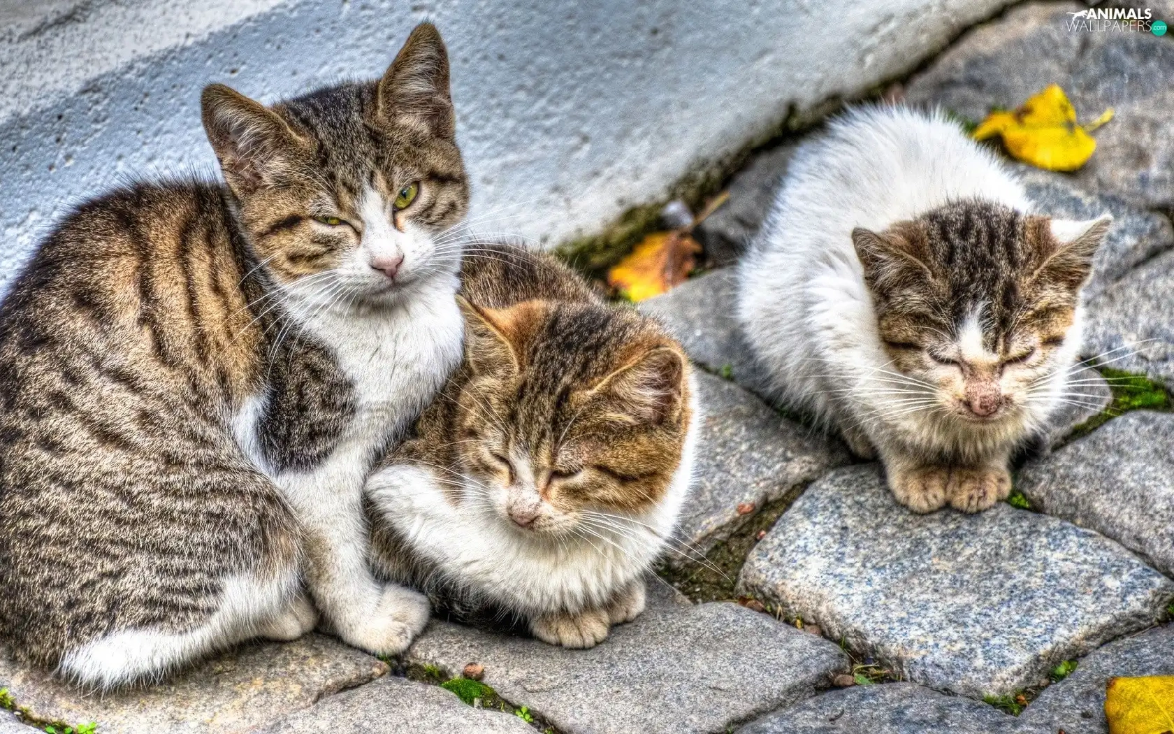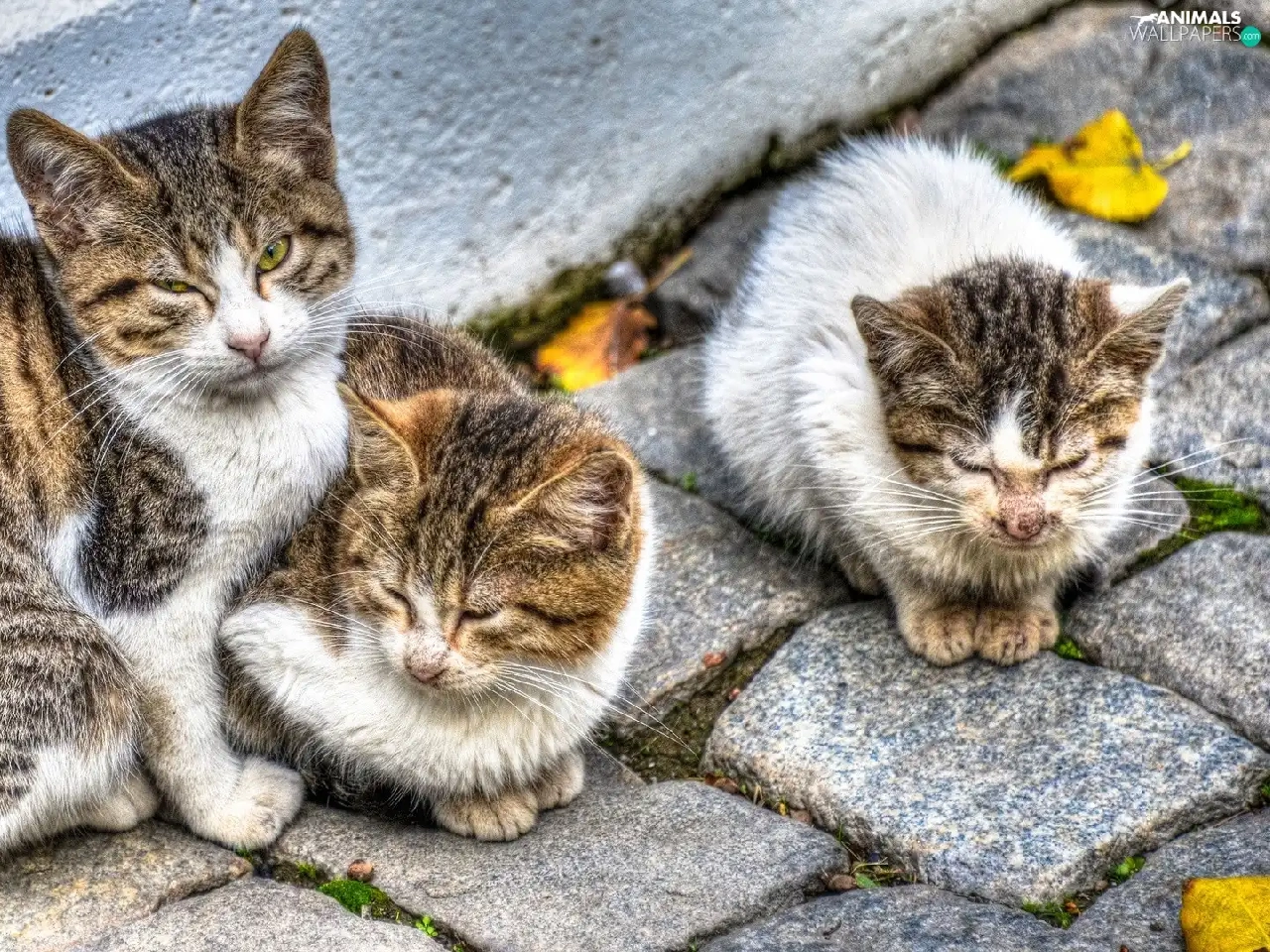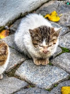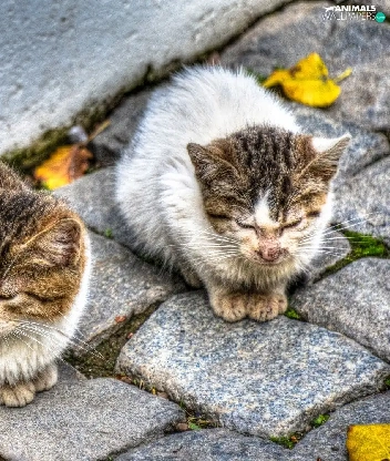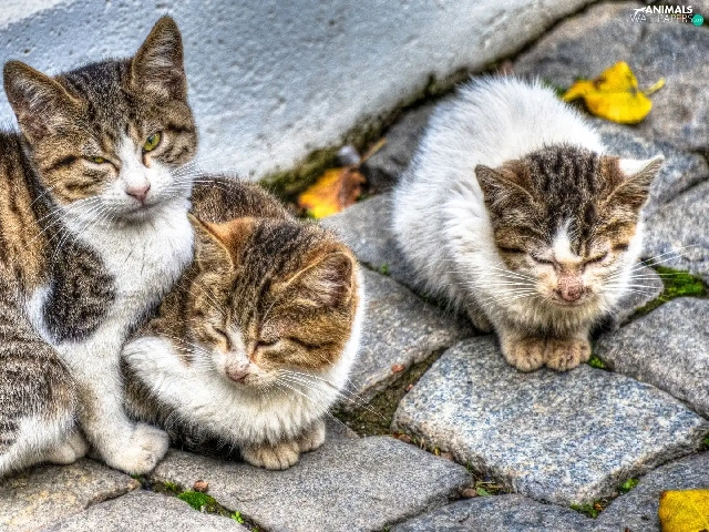 brick, paving, Sleeping, puss, Three