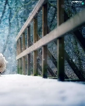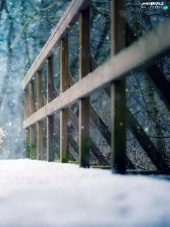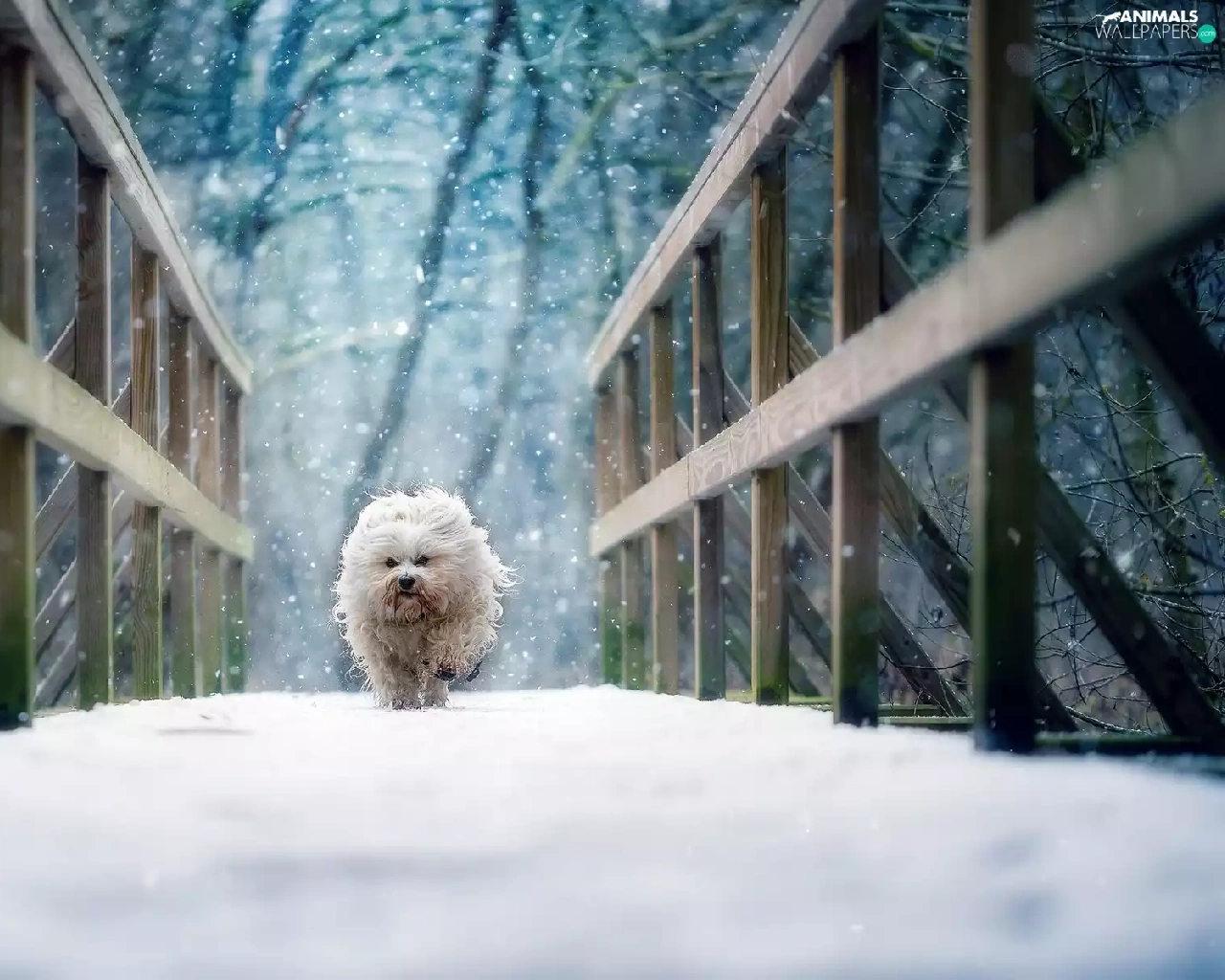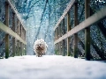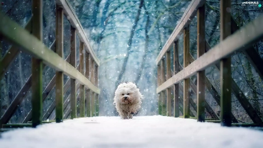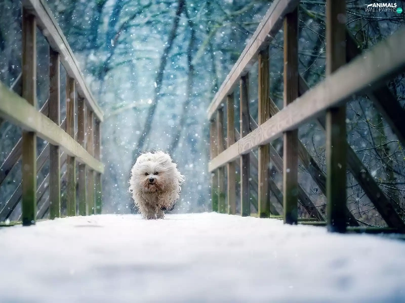 winter, dog, Havanese, bridge