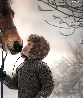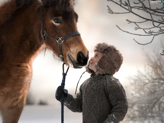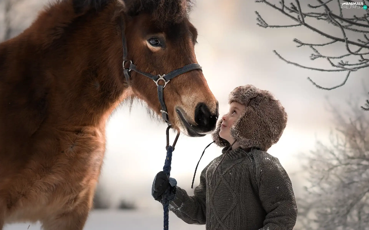 Hat, Kid, Horse, bridle, Jacked, boy
