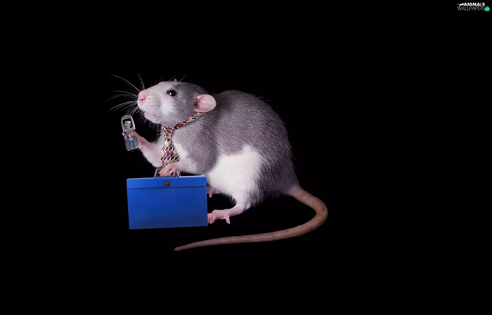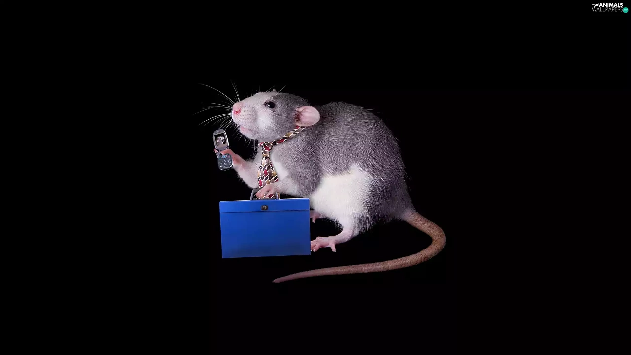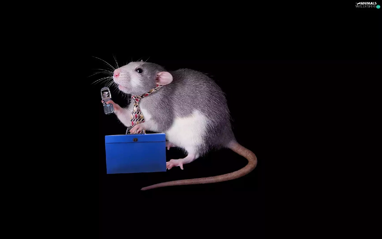 Telephone, Tie, background, briefcase, rat, dark, Funny