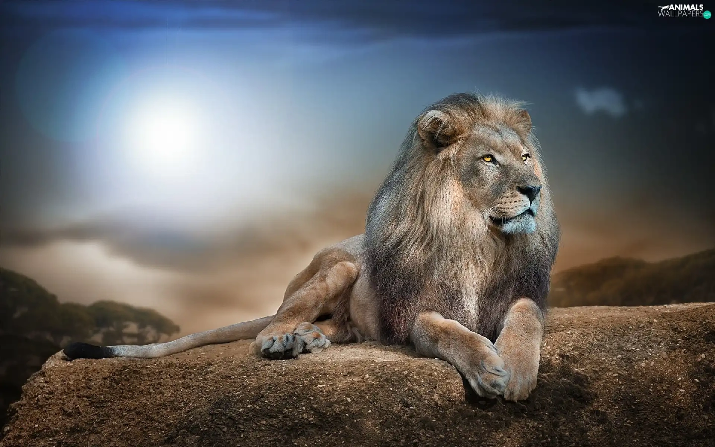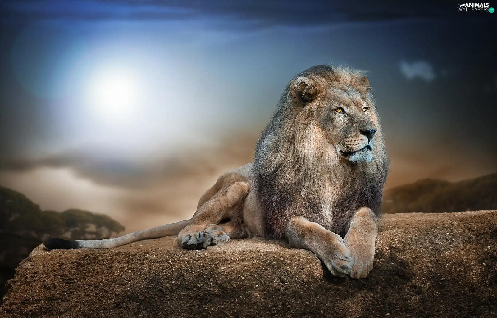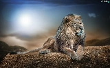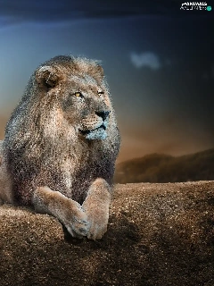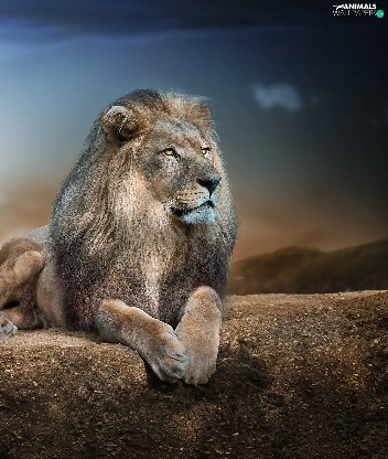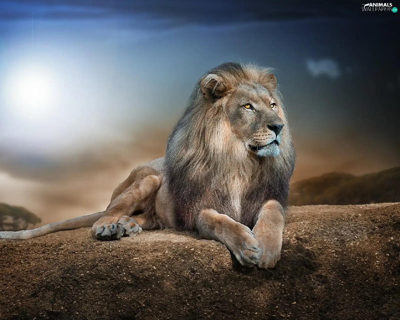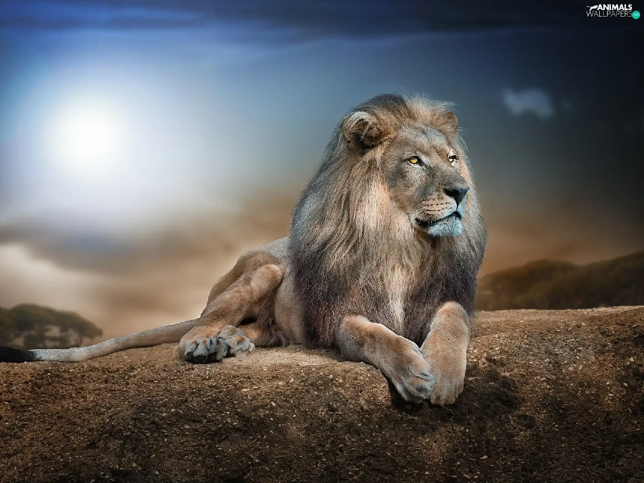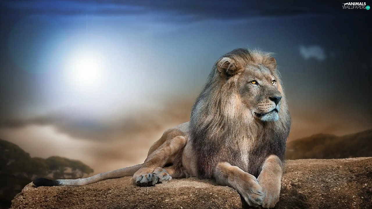 Lion, sun, Rocks, glamour