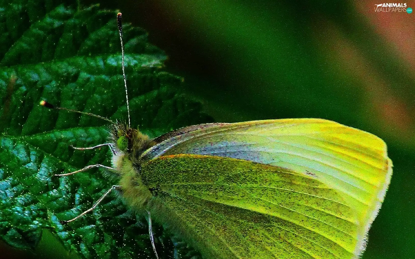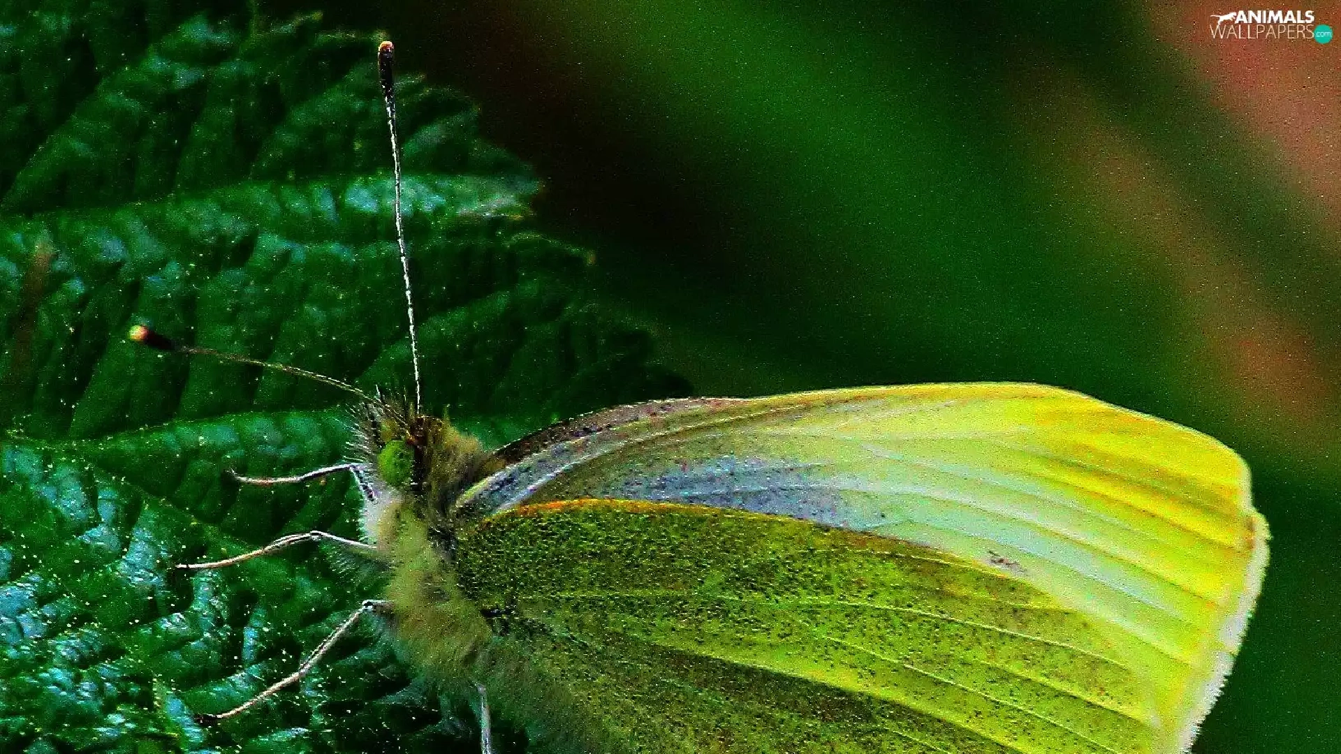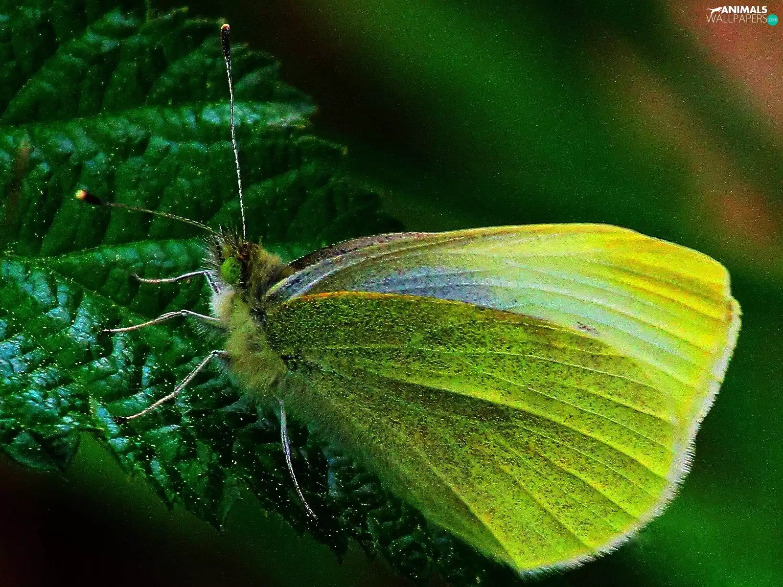 Yellow, Brimstone Butterfly, leaf, butterfly