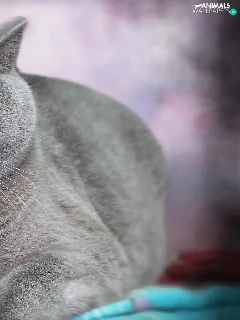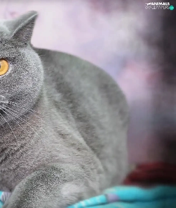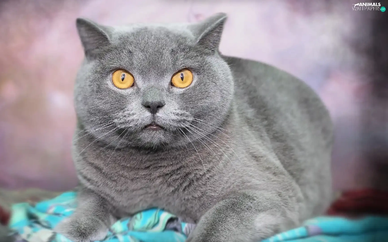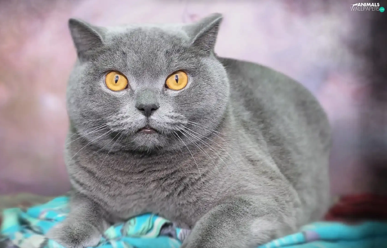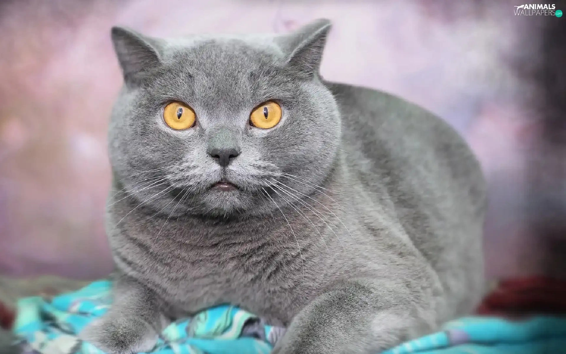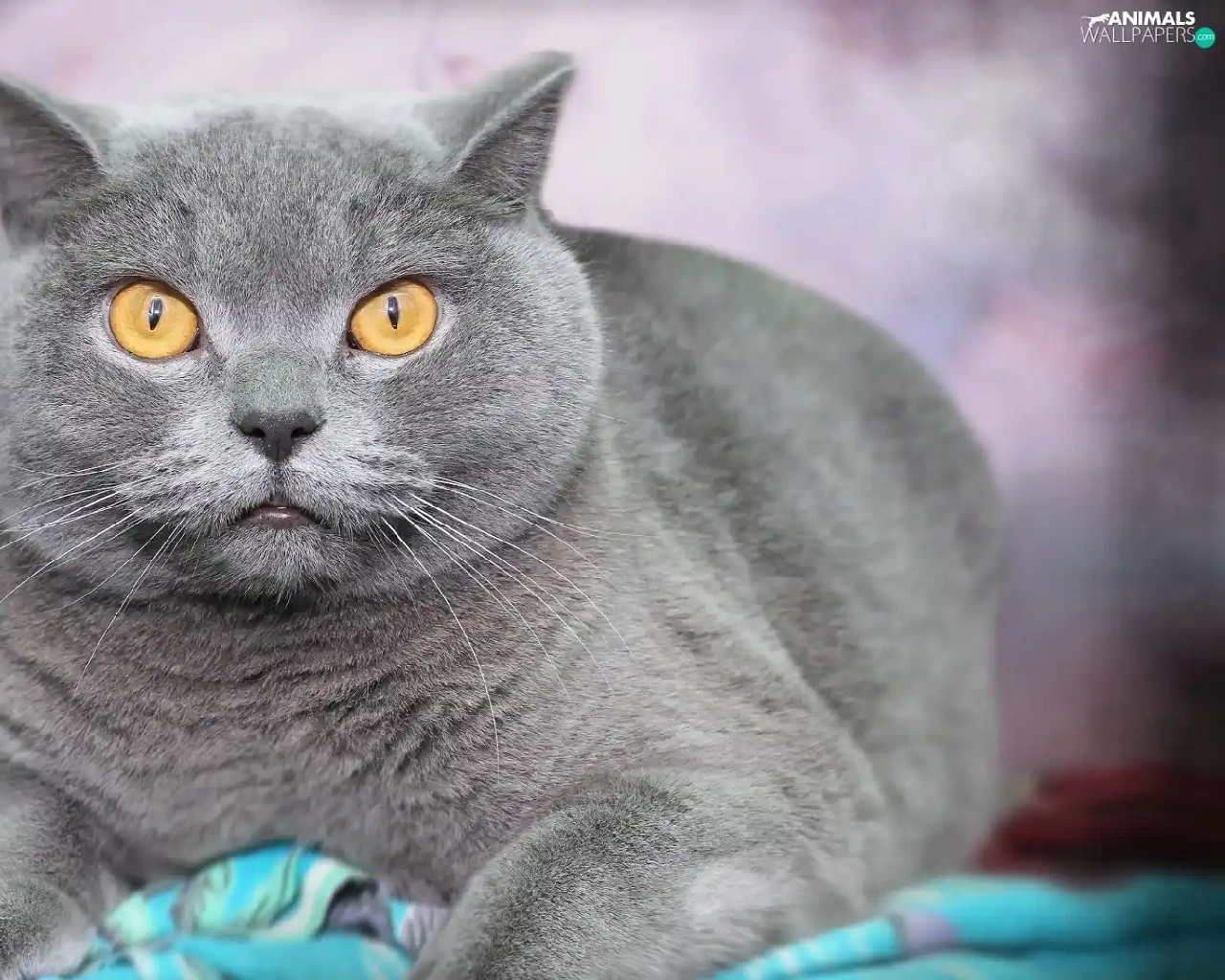 Yellow, Eyes, lying, British Shorthair Cat, Gray