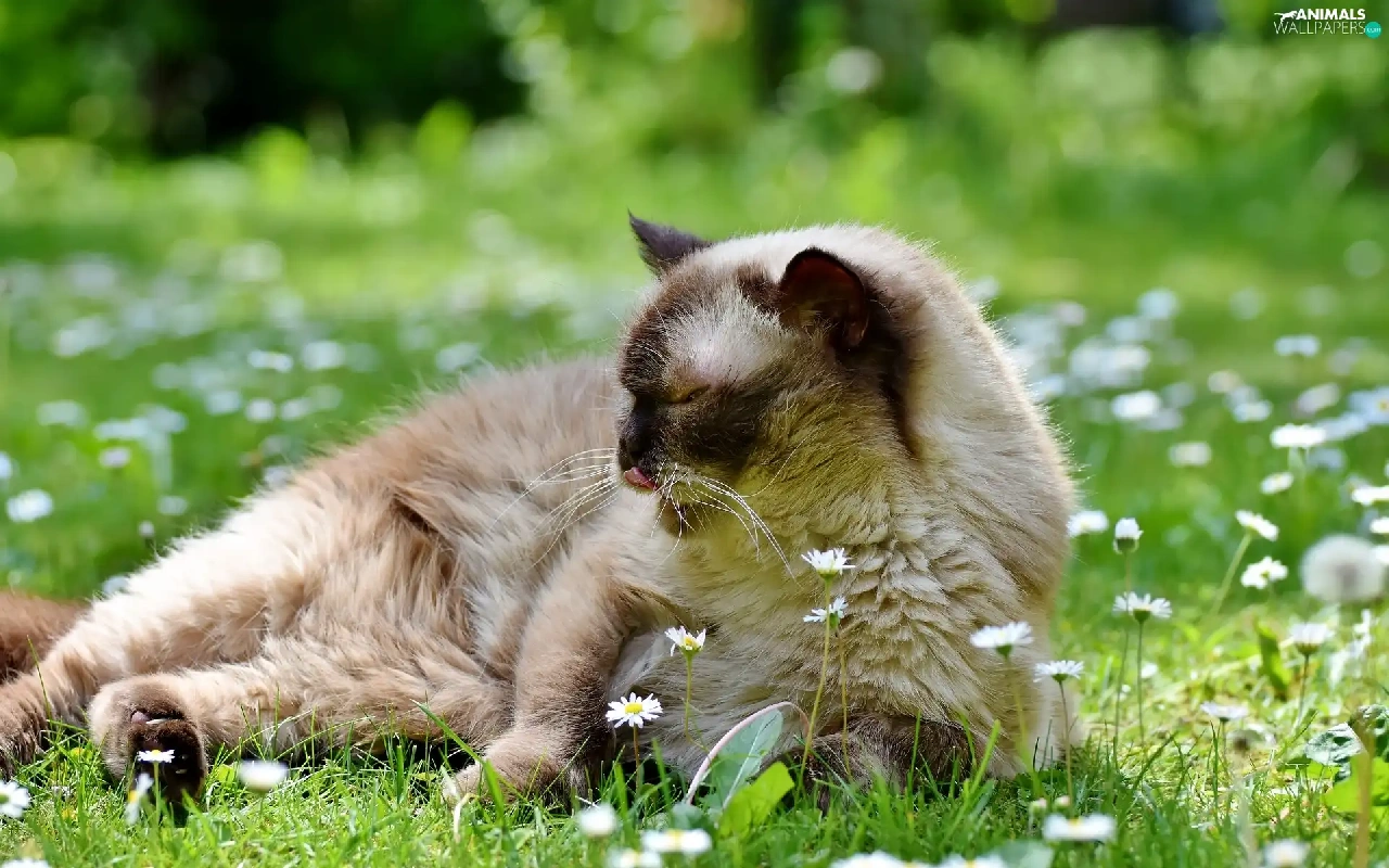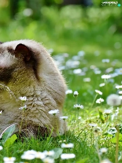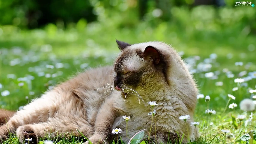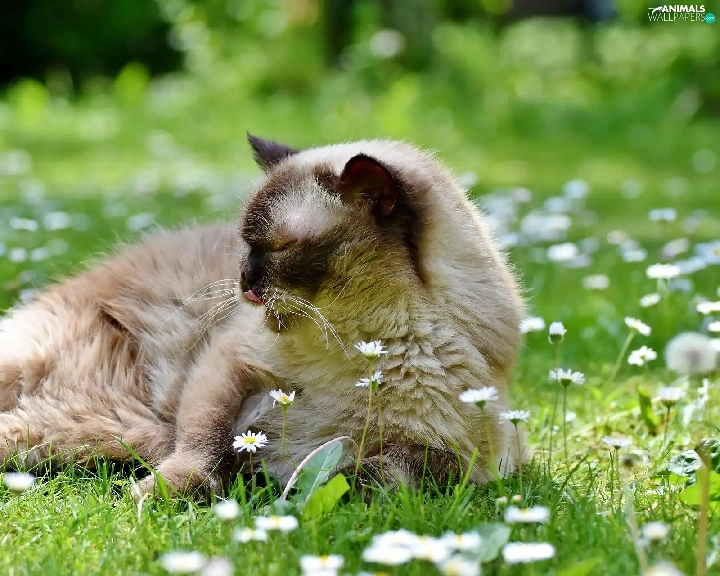 daisies, British Shorthair Cat, Flowers