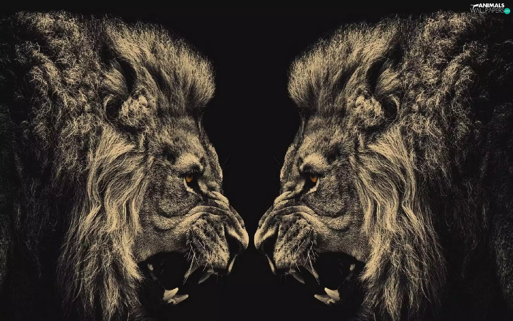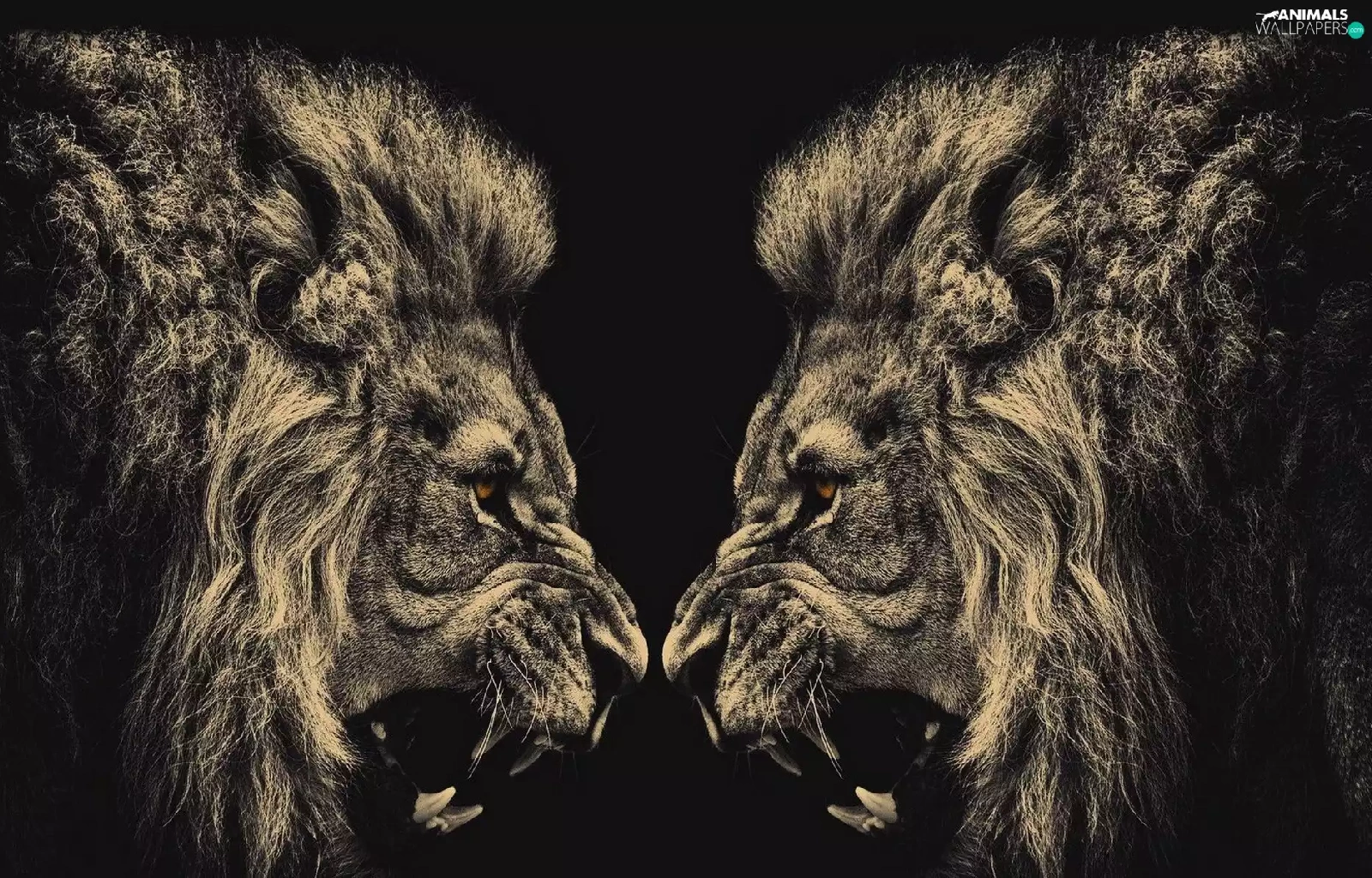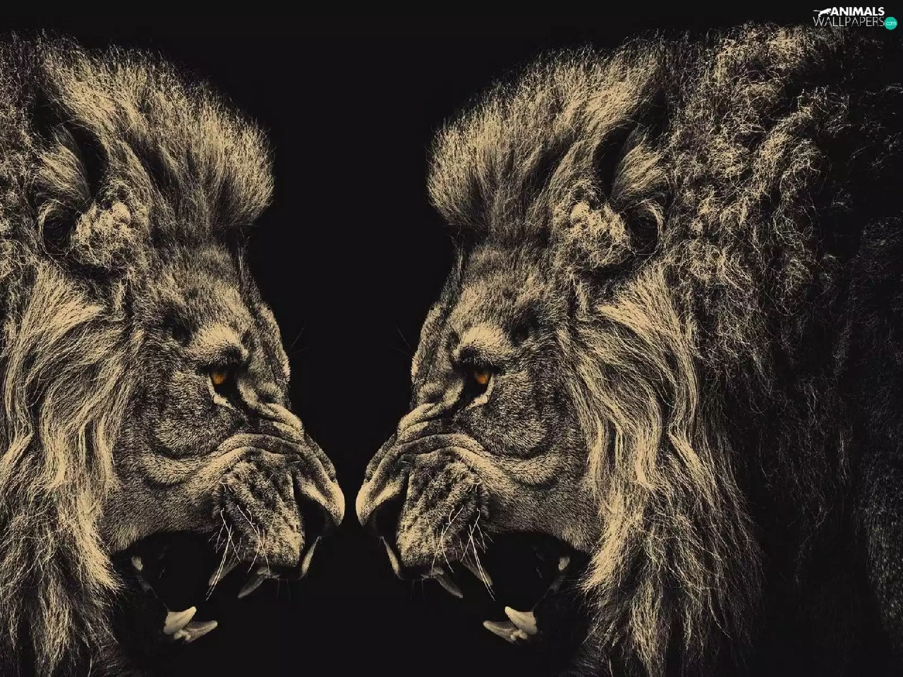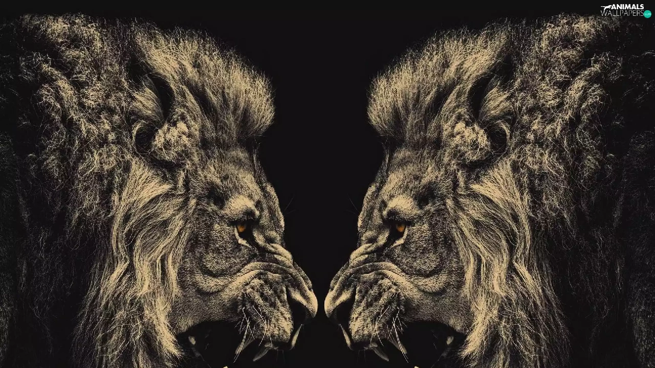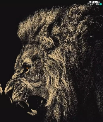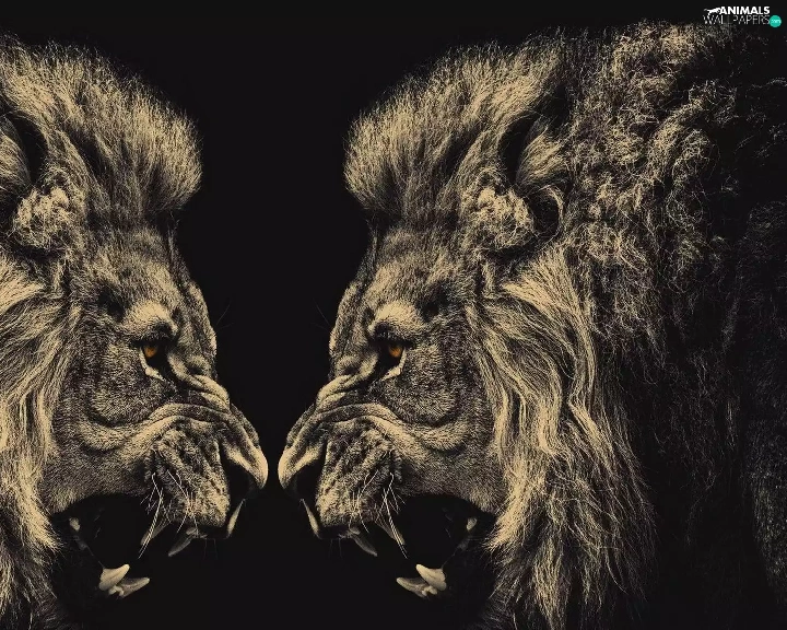 canines, Males, lions, Brown eyes, animals