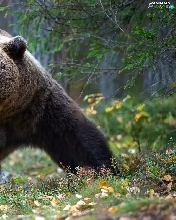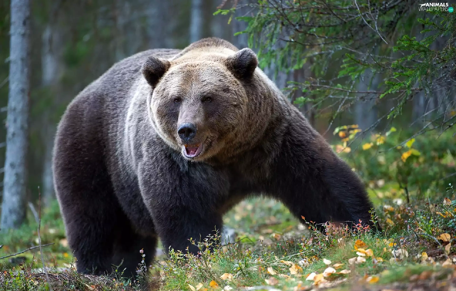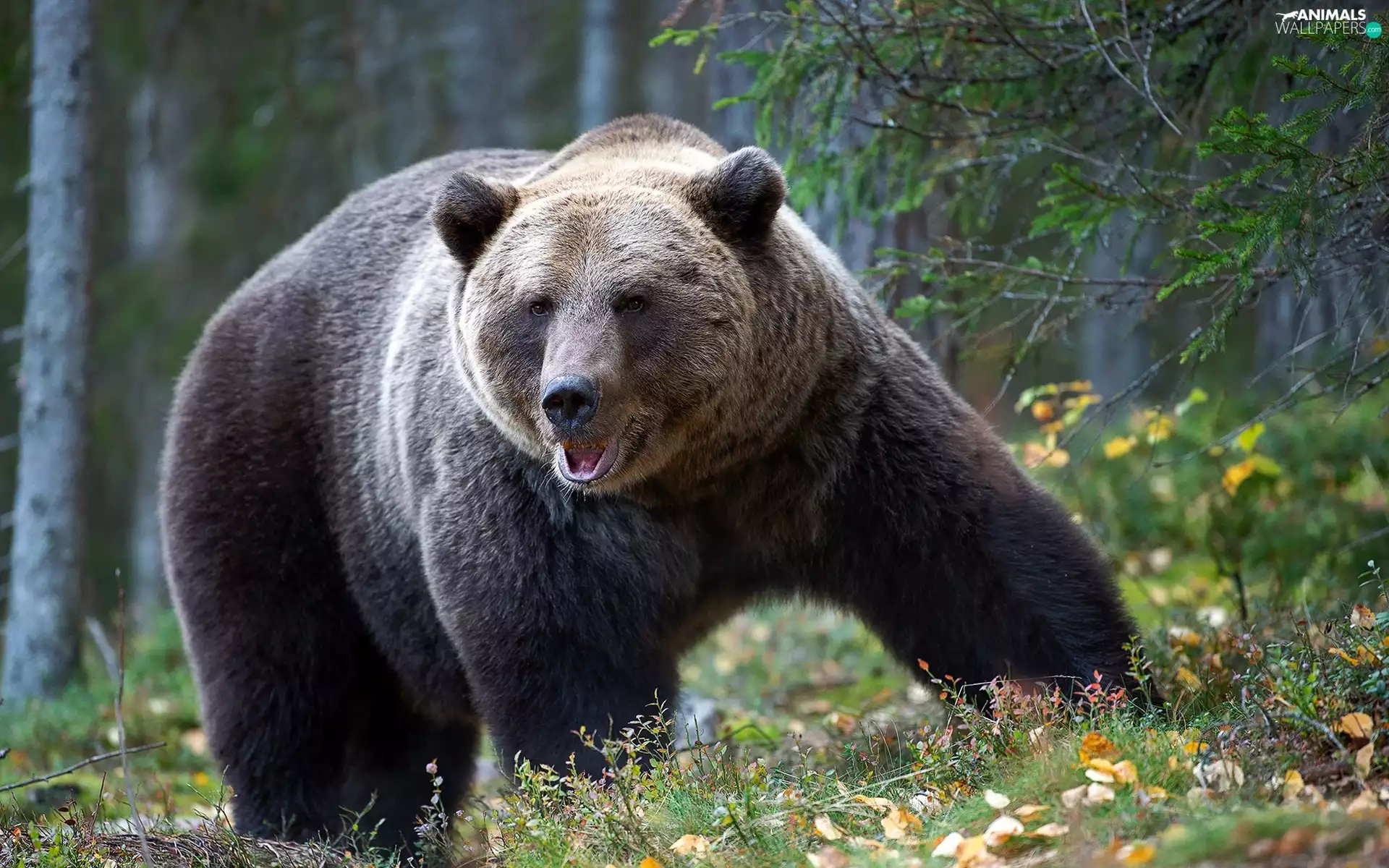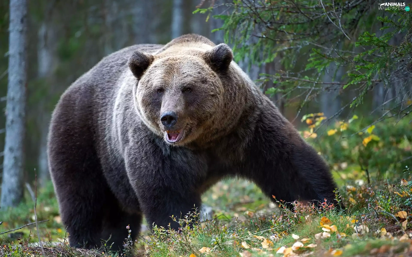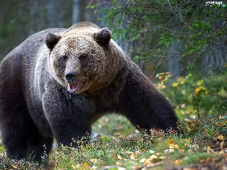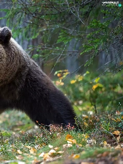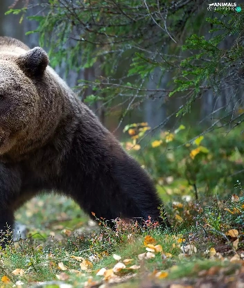 viewes, forest, Big, Brown bear, Leaf, trees