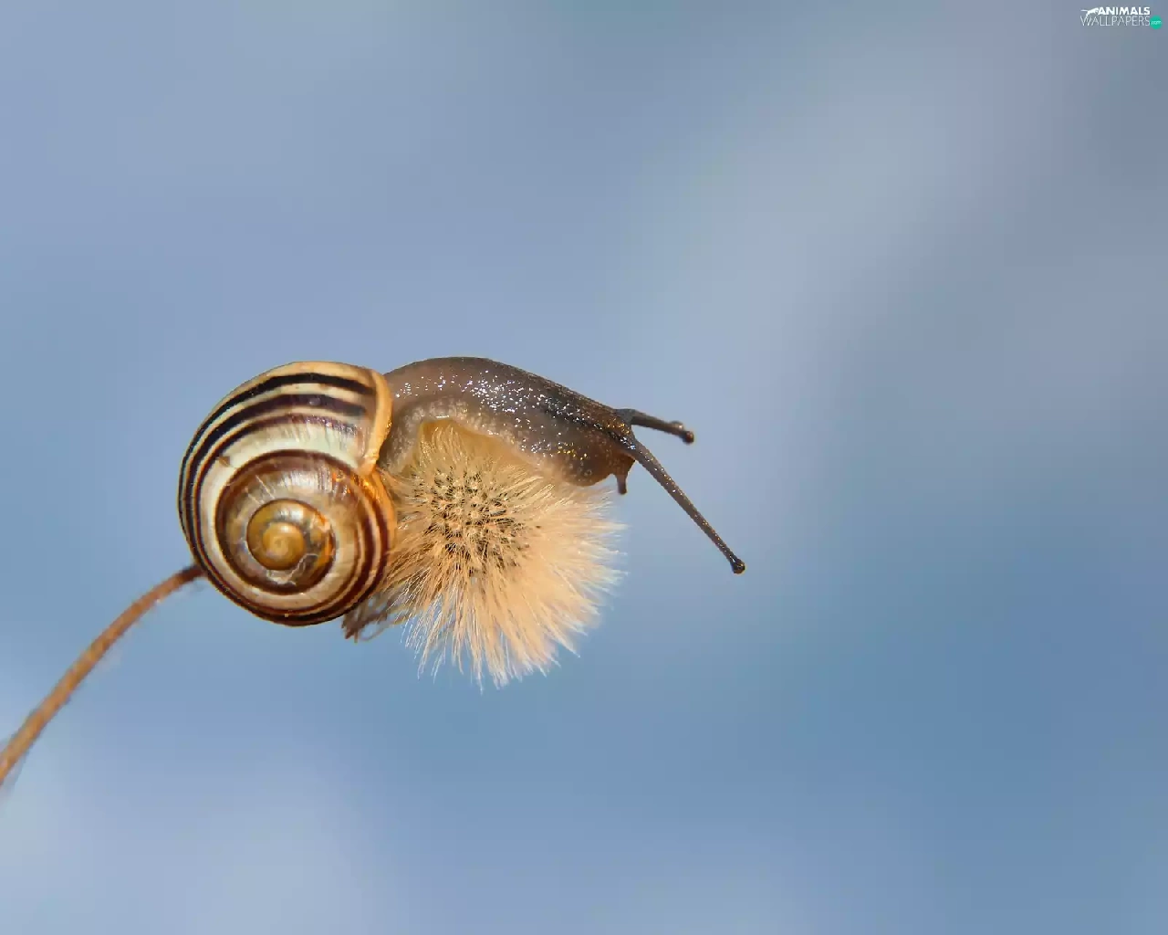 dandelion, Brown-lipped snail, snail