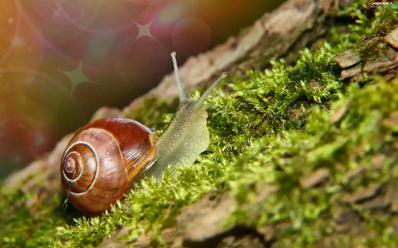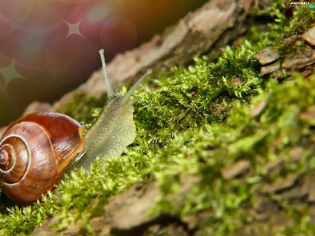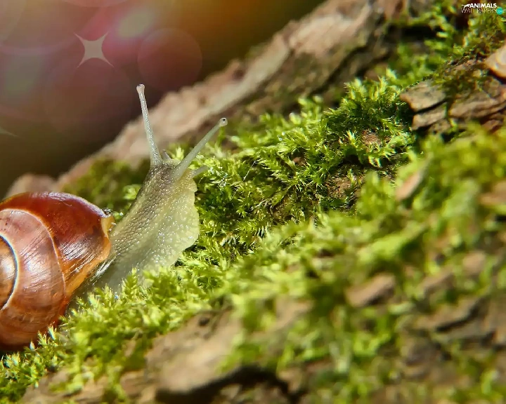 Moss, Brown-lipped snail, snail