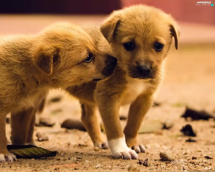 puppies, Two cars, Brown