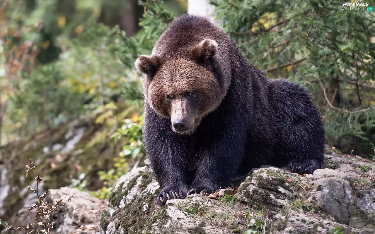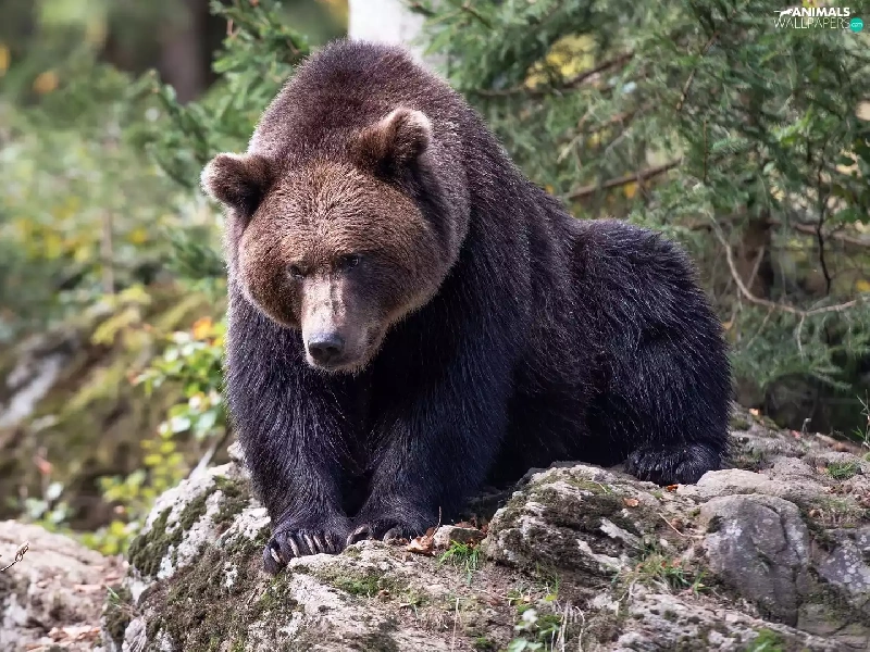 Brown bear, Rocks