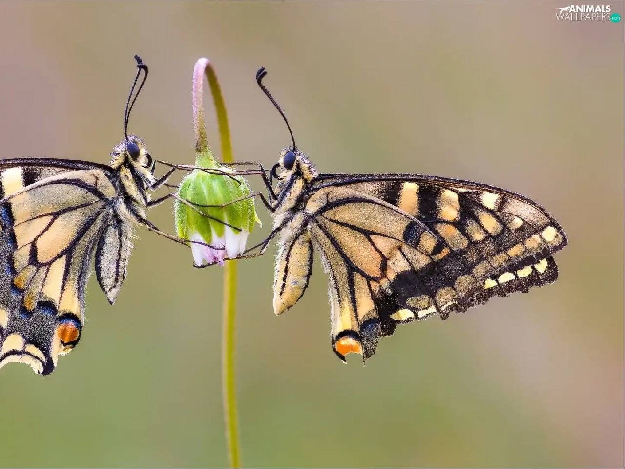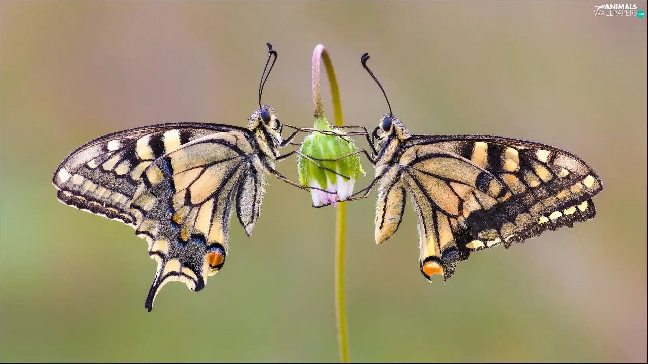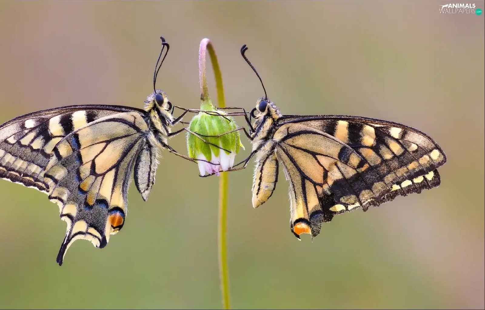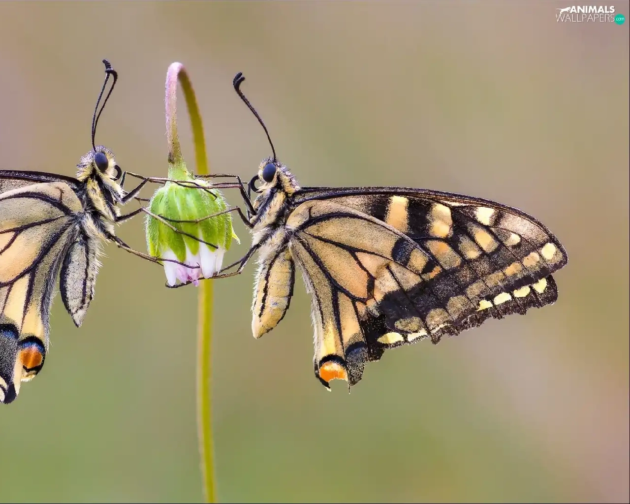 Close, butterflies, daisy, Oct Queen, insects, Flower, bud