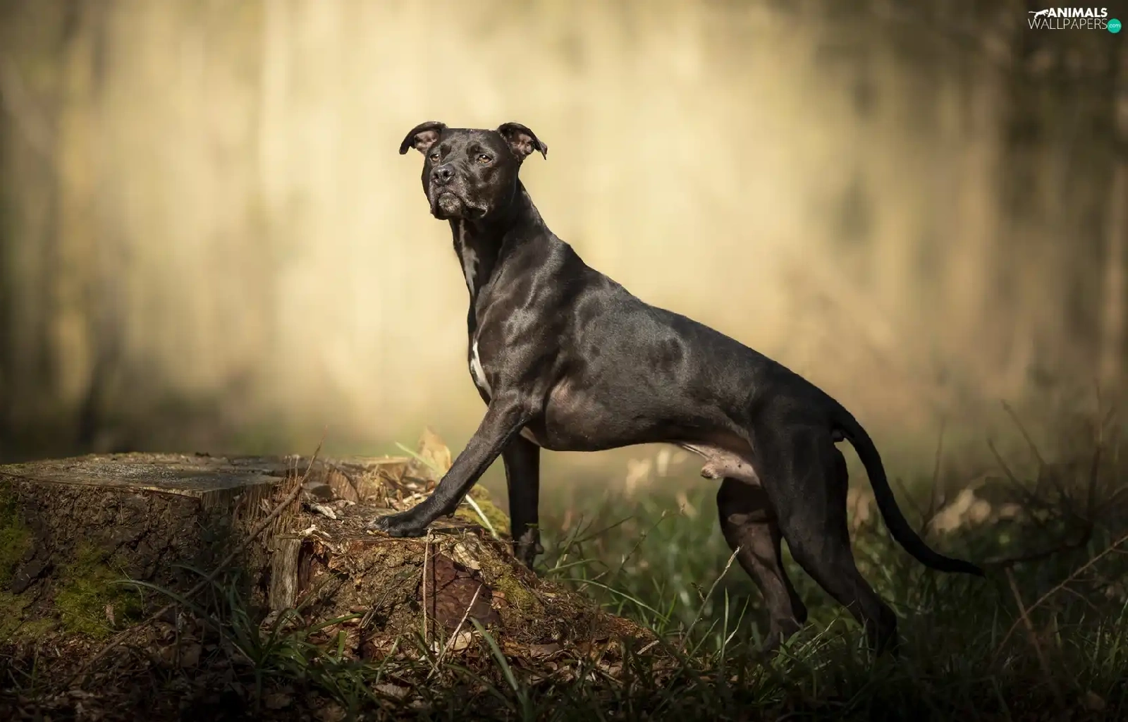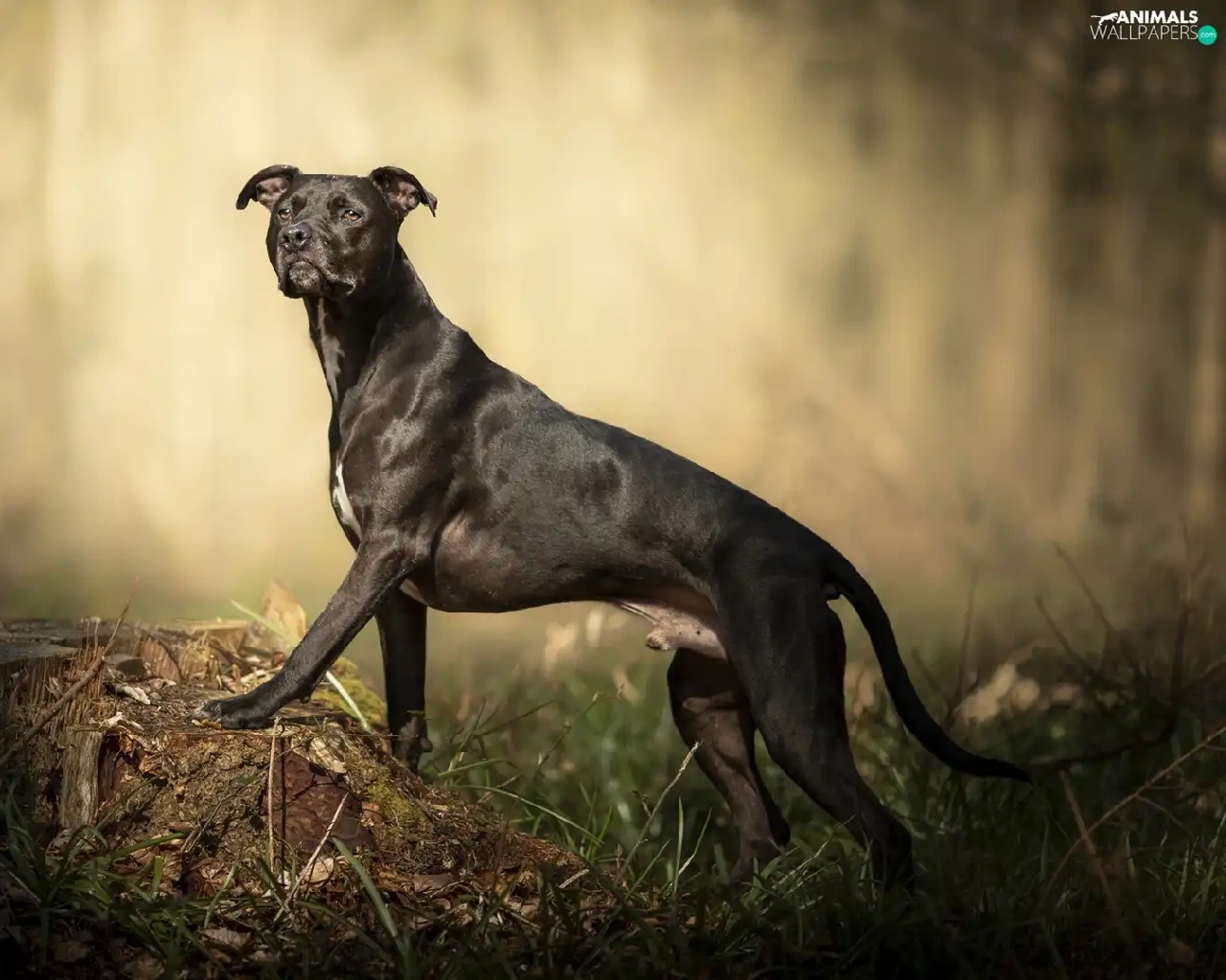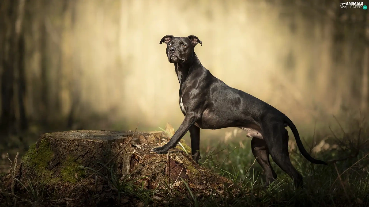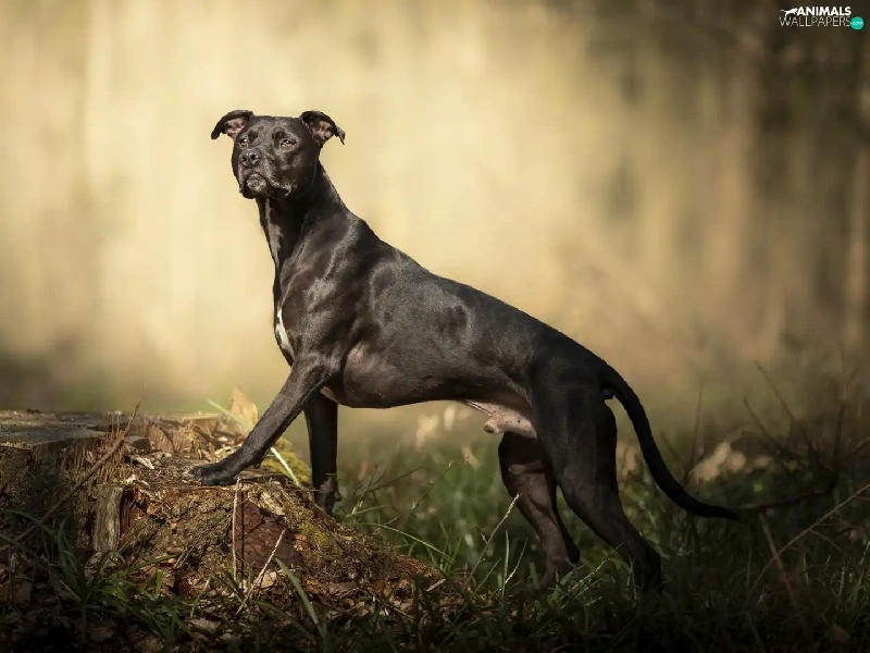 trunk, grass, Pit Bull Terrier, figure, dog
