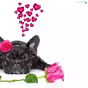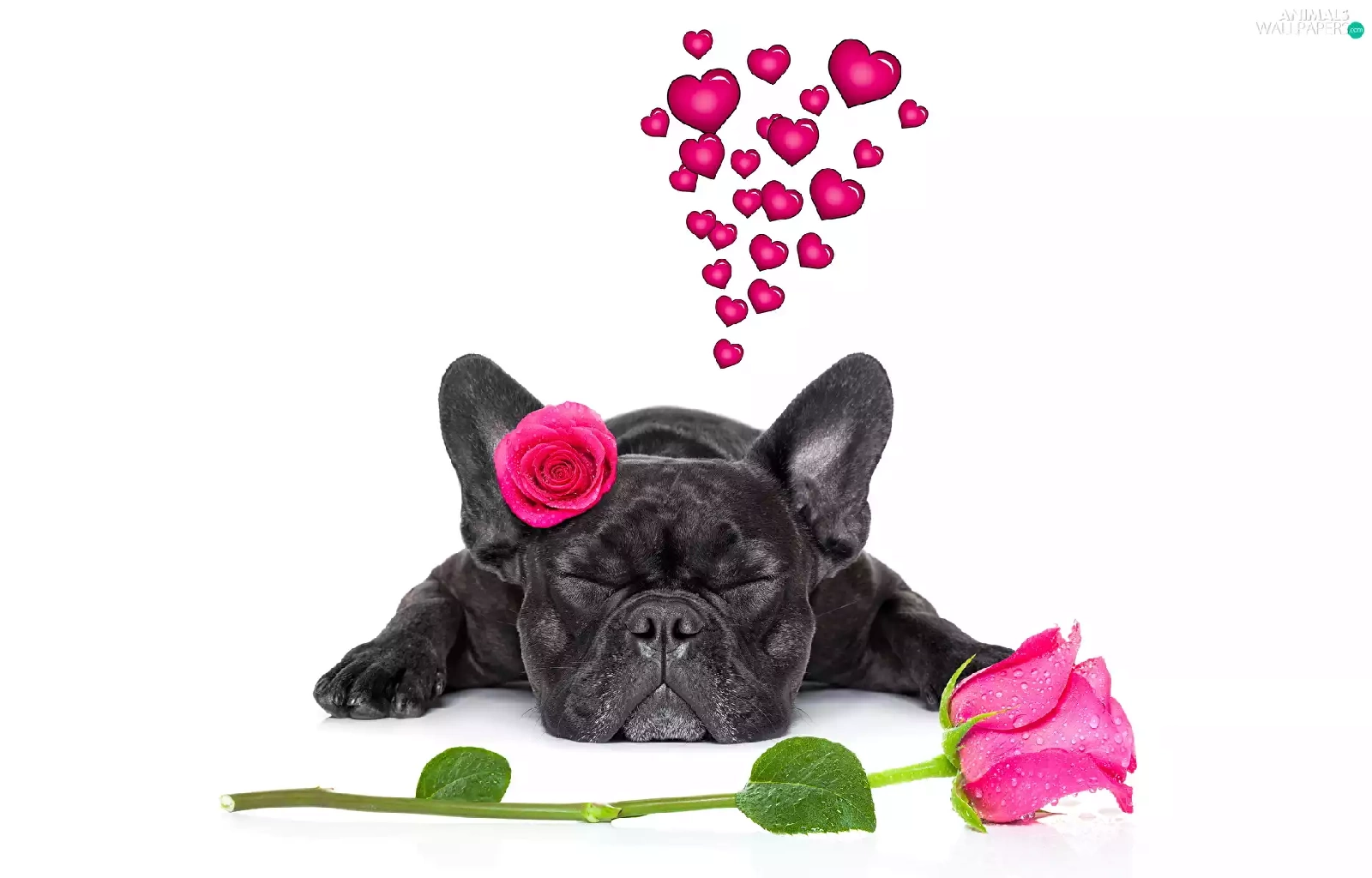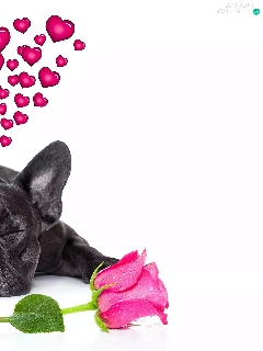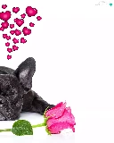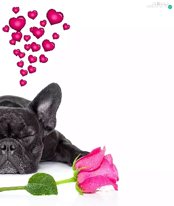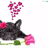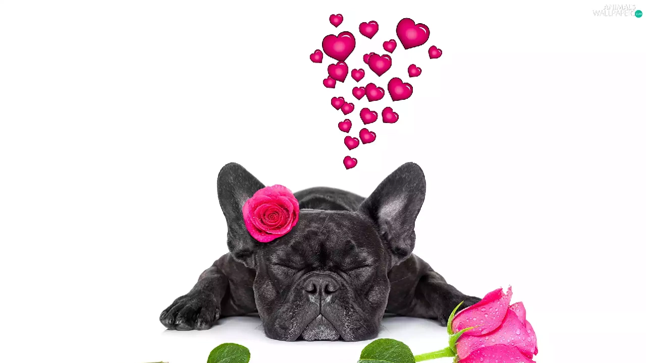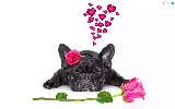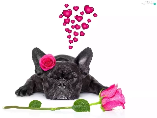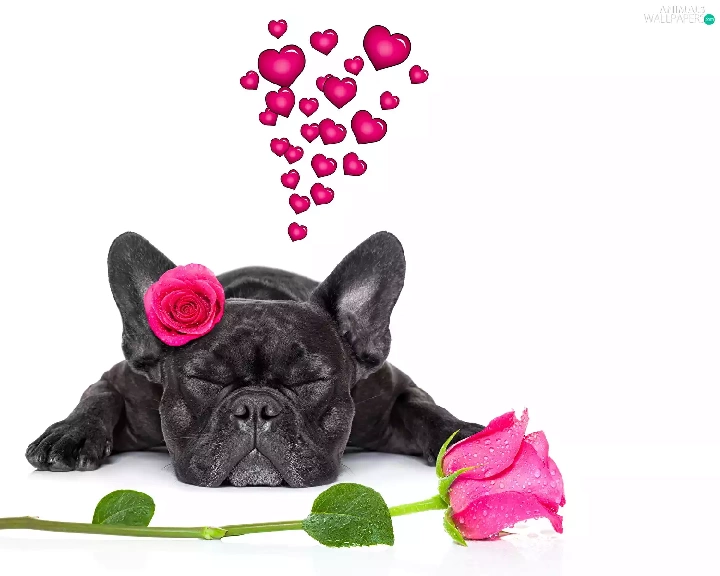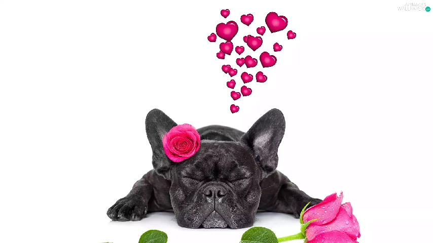 in love, dog, roses, heart, Flowers, French Bulldog