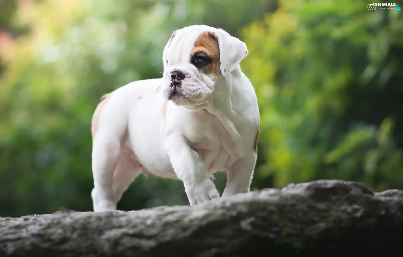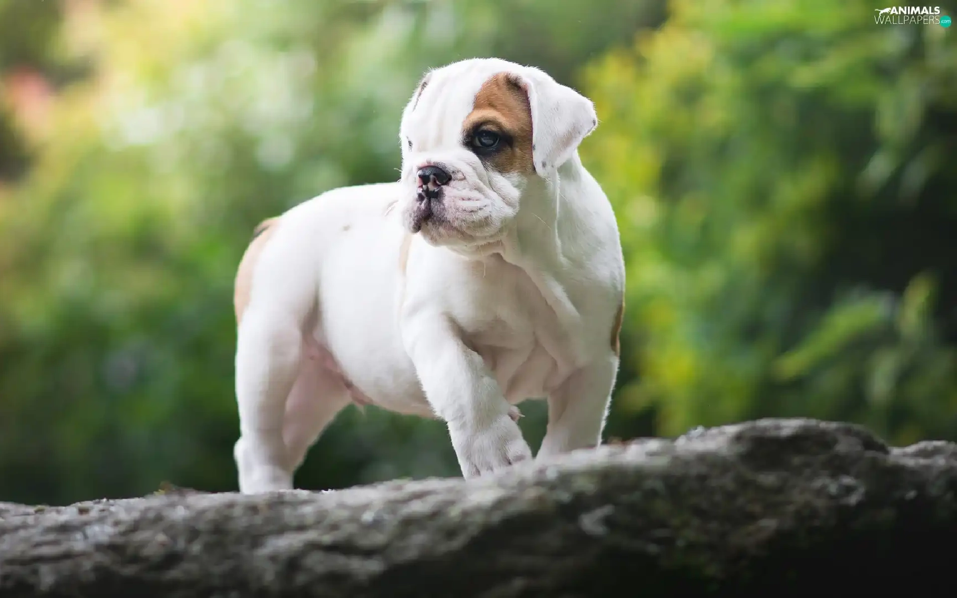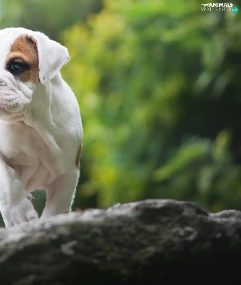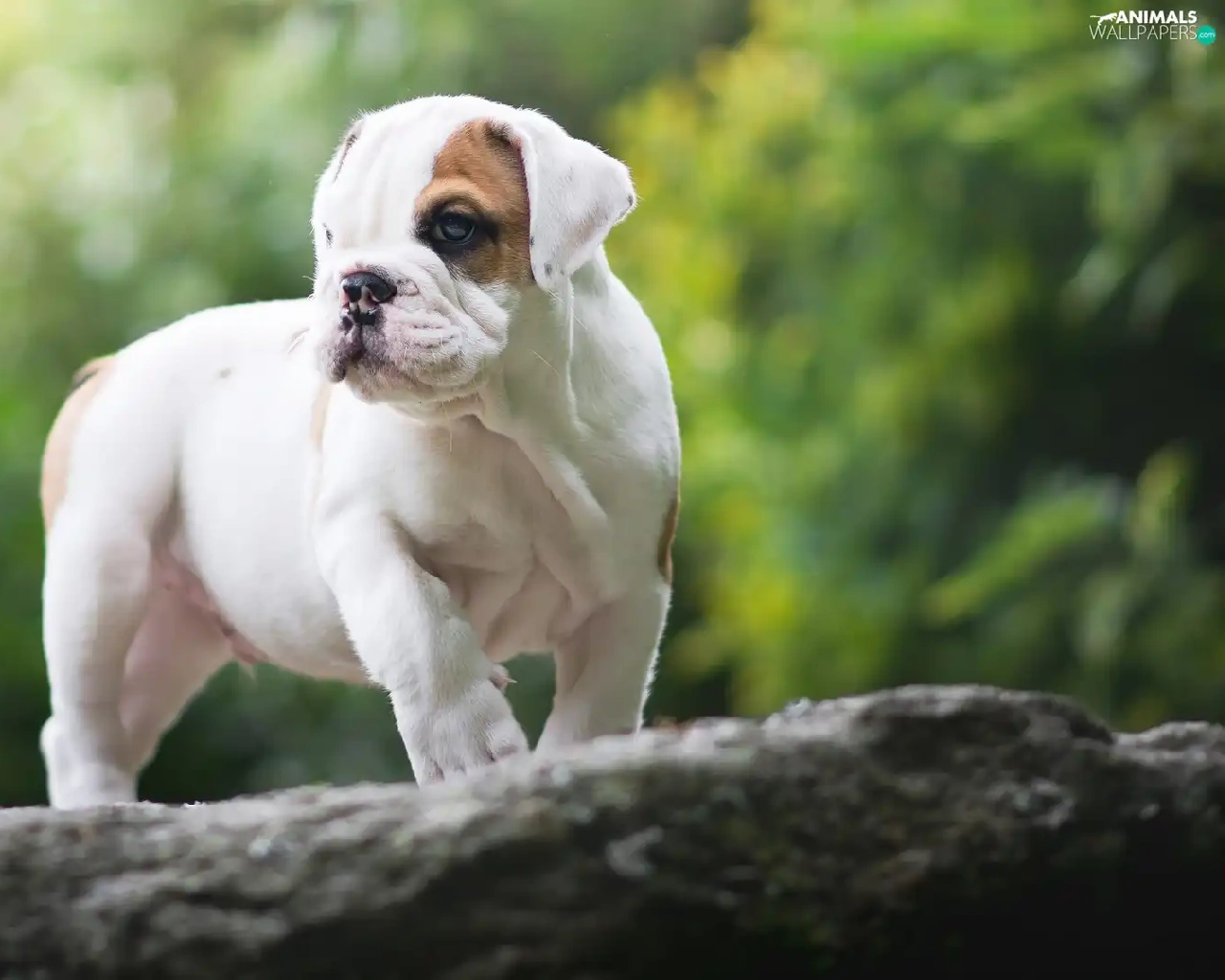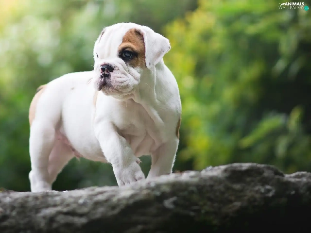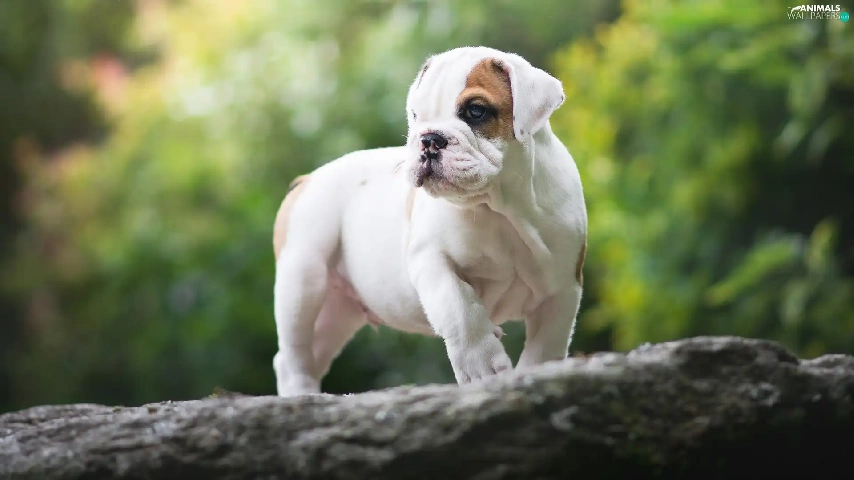 trees, Puppy, English Bulldog