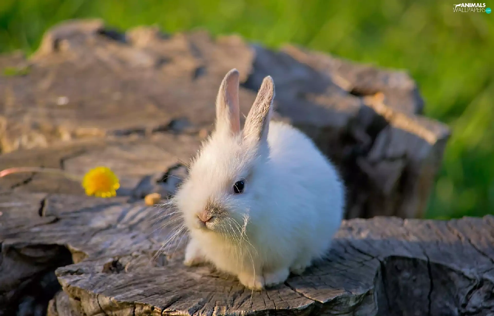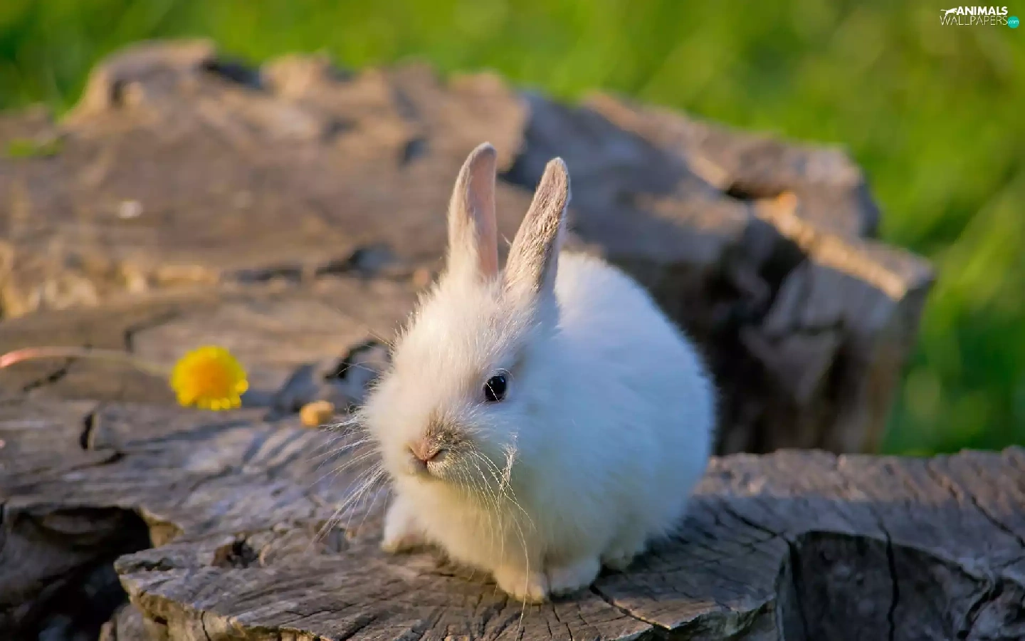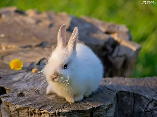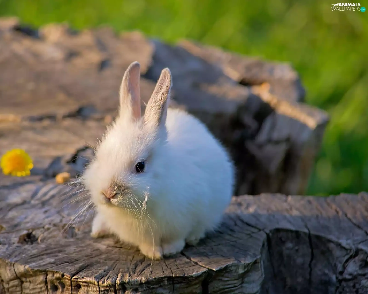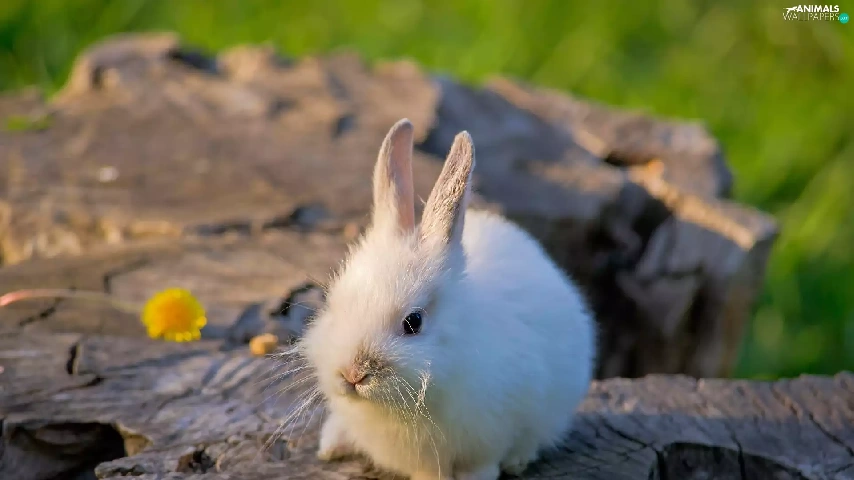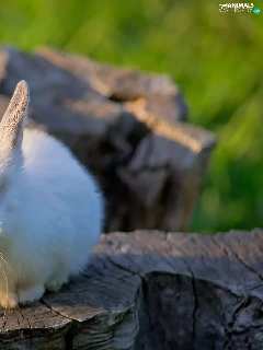 White, Bunny, trees, viewes, trunk