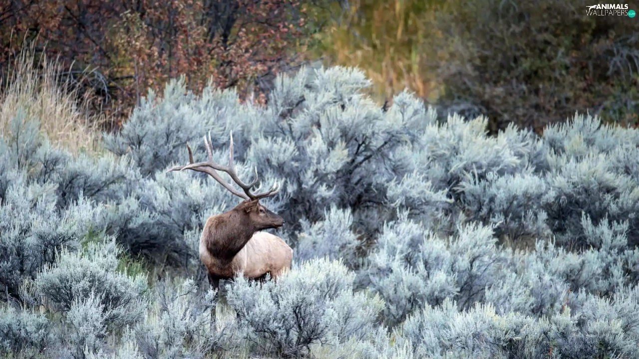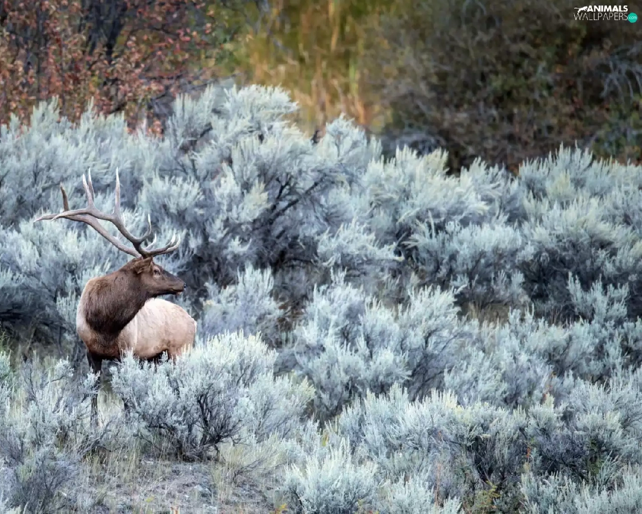 Bush, deer, frosty