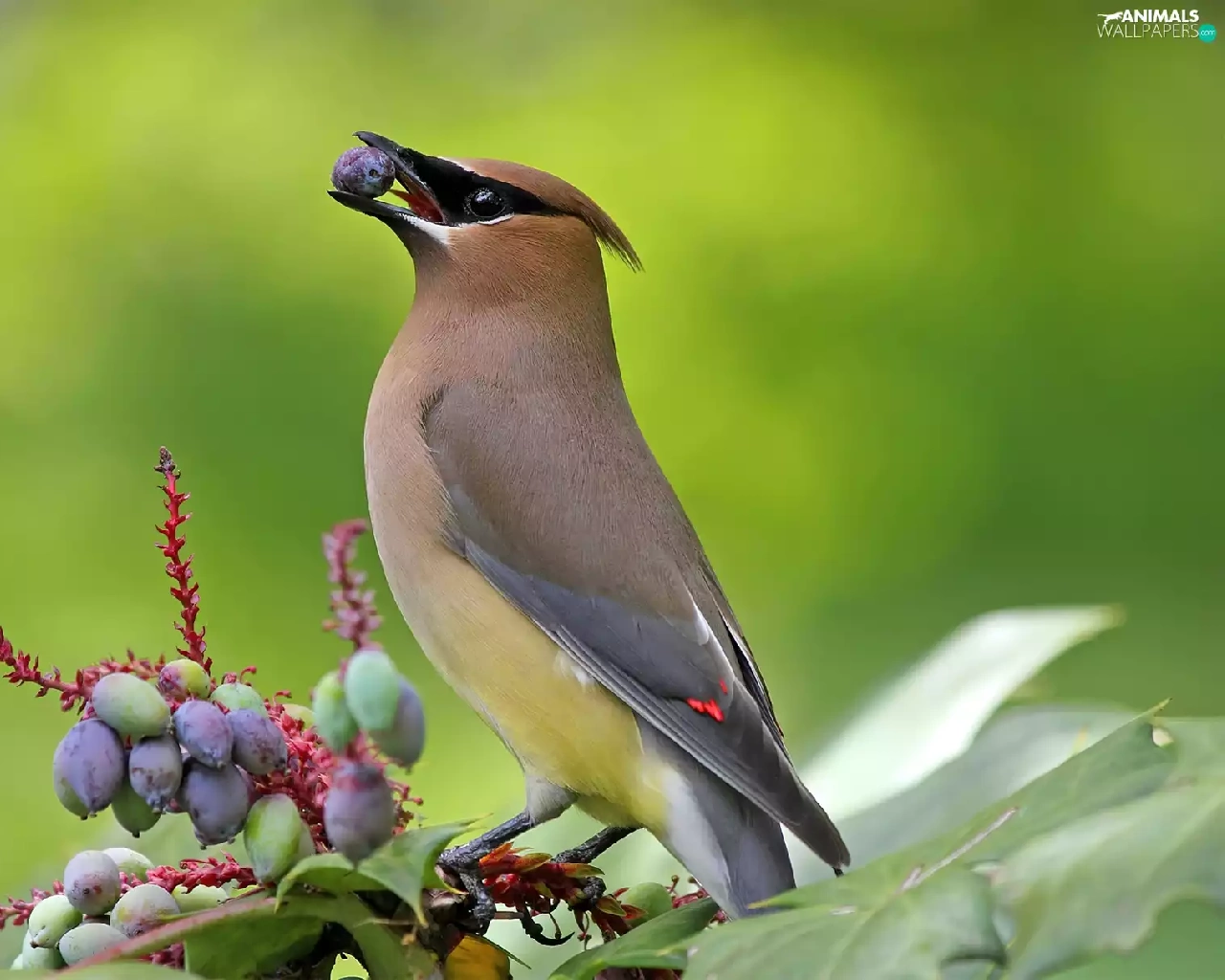 bush, Waxwing, Fruits