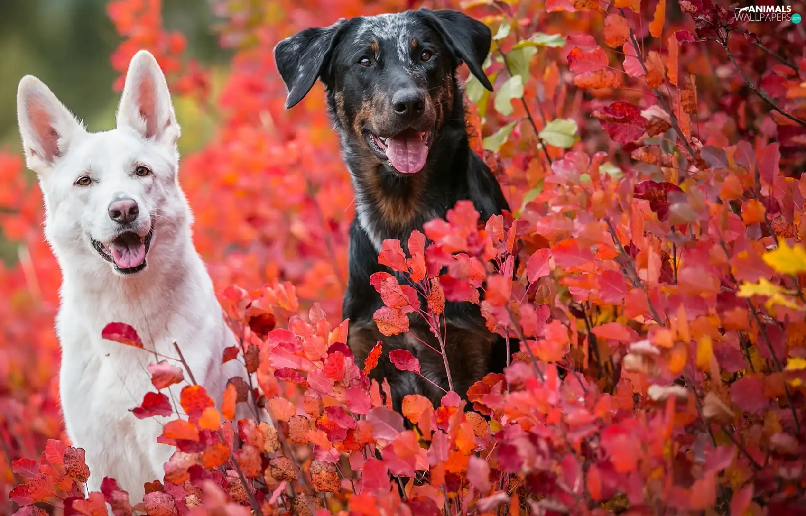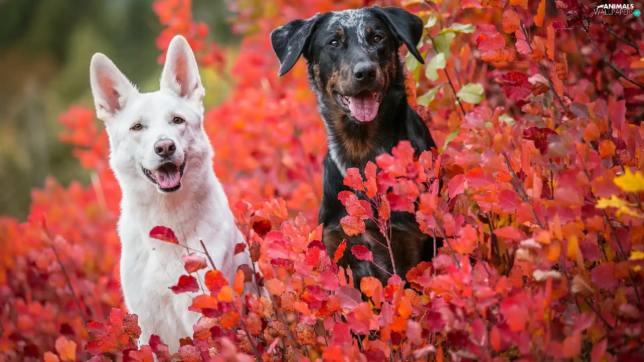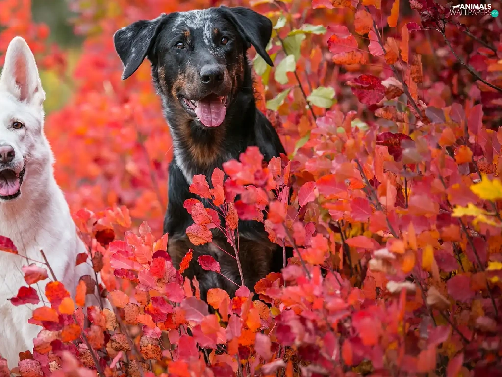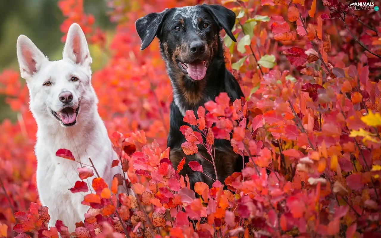 mongrel, Dogs, Leaf, Bush, Red, Swiss Shepherd