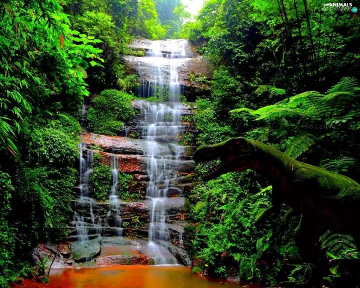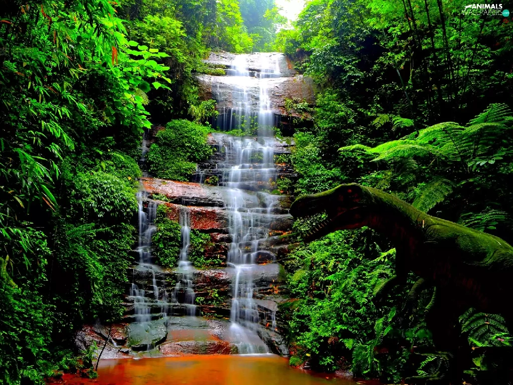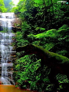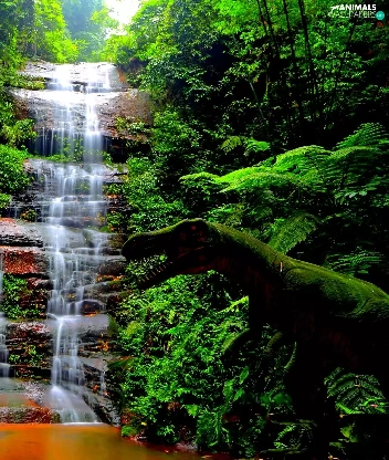 Bush, waterfall, water